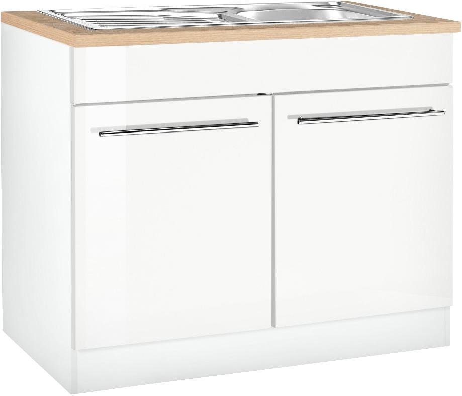 Ergänzende Maßangaben | Gesamtmaße Einbauspüle: (B/T): 86/43,5 cm Maße des Spülbeckens: (B/T/Beckentiefe): 37/34/14 cm Sockel in der Höhe nicht verstellbar |