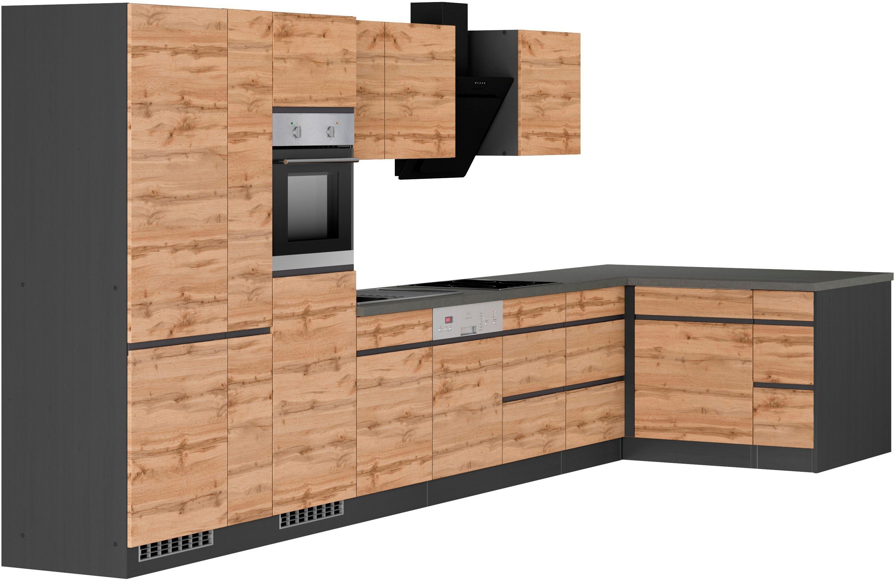 Ausstattung | Durchgehende Arbeitsplatte Einlegeböden höhenverstellbar Seitenverkehrt stellbar Sockelhöhe nicht verstellbar Stellschrauben in den Unterschränken als Montagehilfe zum Ausgleichen von Unebenheiten: 0-4 cm Türen wahlweise rechts/links montierbar inkl. Edelstahl-Auflagespüle, mit Abtropffläche mit E-Geräten weitere Informationen zu Elektrogeräten: siehe Спецификации товара (на немецком) |