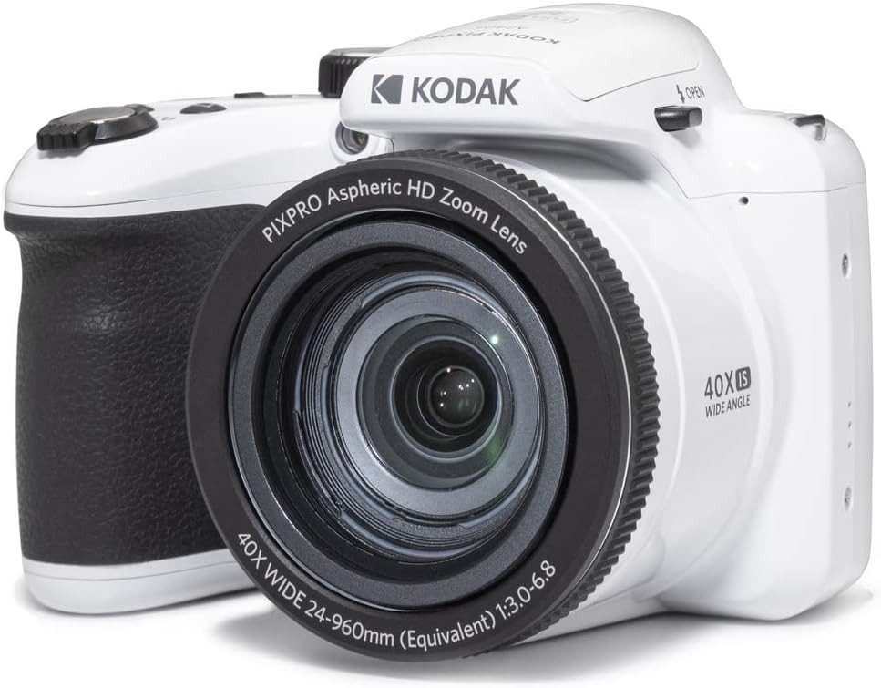 Lieferumfang | KODAK Pixpro Astro Zoom AZ405 Bridgekamera (Farbe: Schwarz) Trageriemen Objektivabdeckung mit Halteband 4x AA-Alkaline-Batterien (zum sofortigen Start) USB-Kabel (Typ A auf Mini-USB) Bedienungsanleitung / Kurzanleitung (mehrsprachig) Garantiekarte |