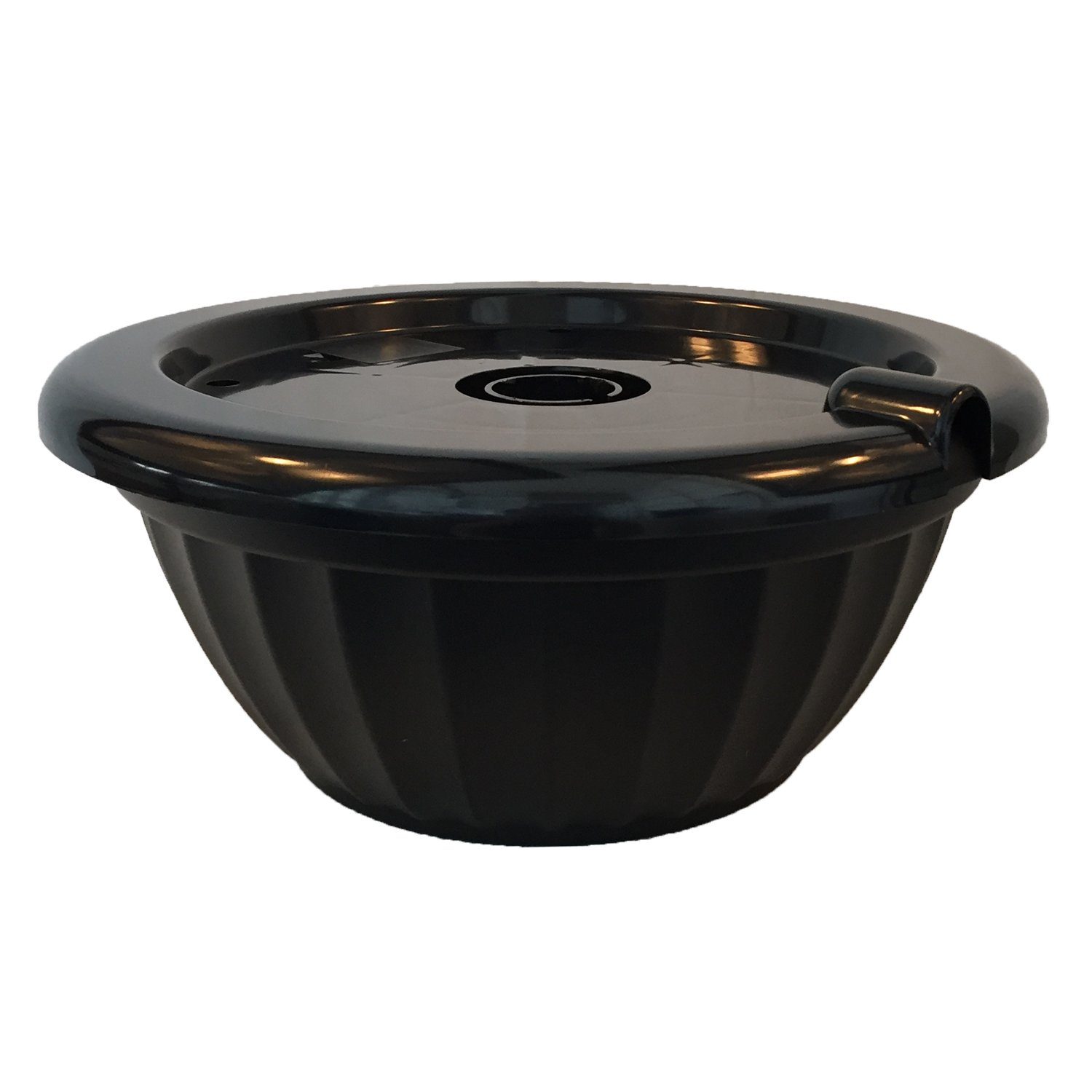 PP (Polypropylen)-Becken und ABS (Acrylnitril-Butadien-Styrol)-Deckel im Set oder einzeln für Wasserobjekte oder Quellsteine, z.B.: Gartenbrunnen, Quellsteine, Bachläufe, Natursteine oder Findlinge mit Wasserspiele. Der ABS-Deckel kann gleichmäßig bis zu 100 kg belastet werden. Maße: 29001-55: Ø ca. 55 cm, Tiefe ca. 20 cm,Fassungsvermögen: ca. 45 Liter. 29001-37E: Ø ca. 37 cm, Tiefe ca. 32 cm,Fassungsvermögen: ca. 25 Liter. 29001-37B: Ø ca. 37 cm, Tiefe ca. 15 cm,Fassungsvermögen: ca. 8 Liter.