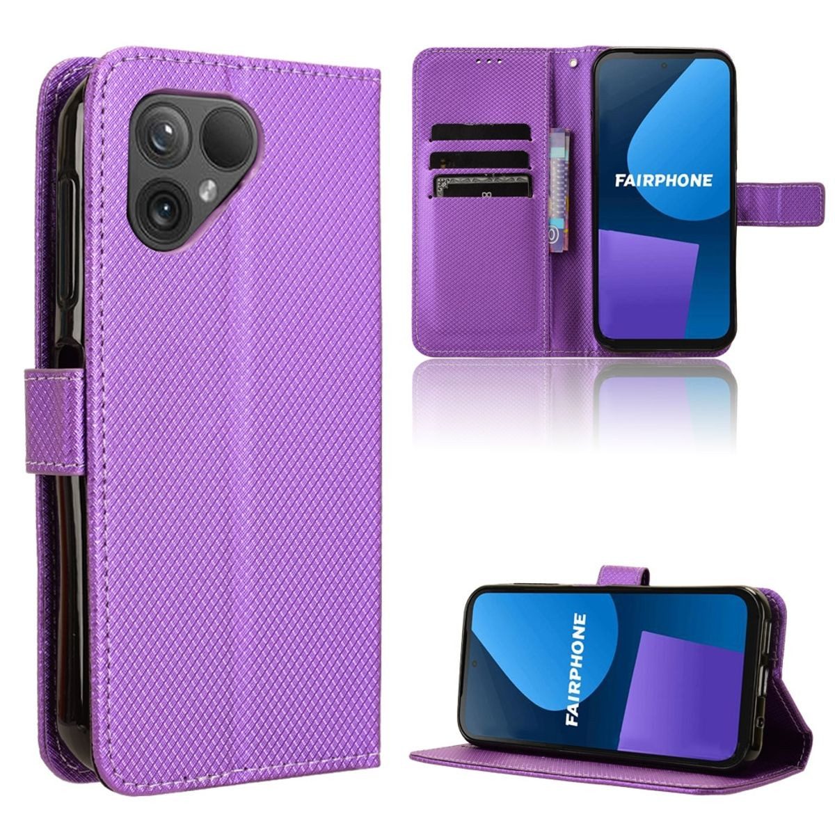 Exklusives Design: Die Hülle ist mit einer einzigartigen Diamanttextur versehen, die ihr ein exklusives und elegantes Aussehen verleiht. Diese Textur verleiht Ihrem Fairphone 5 einen Hauch von Luxus und Stil.
