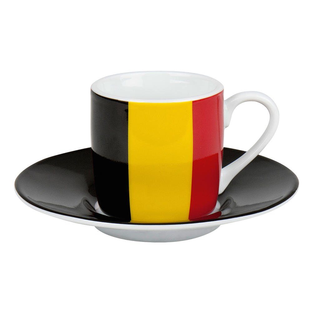 Lieferumfang | 1 Könitz Belgien Flagge Espresso Tasse, Becher, Porzellan, 85 ml 1 Könitz Belgien Flagge Espresso Untertasse |