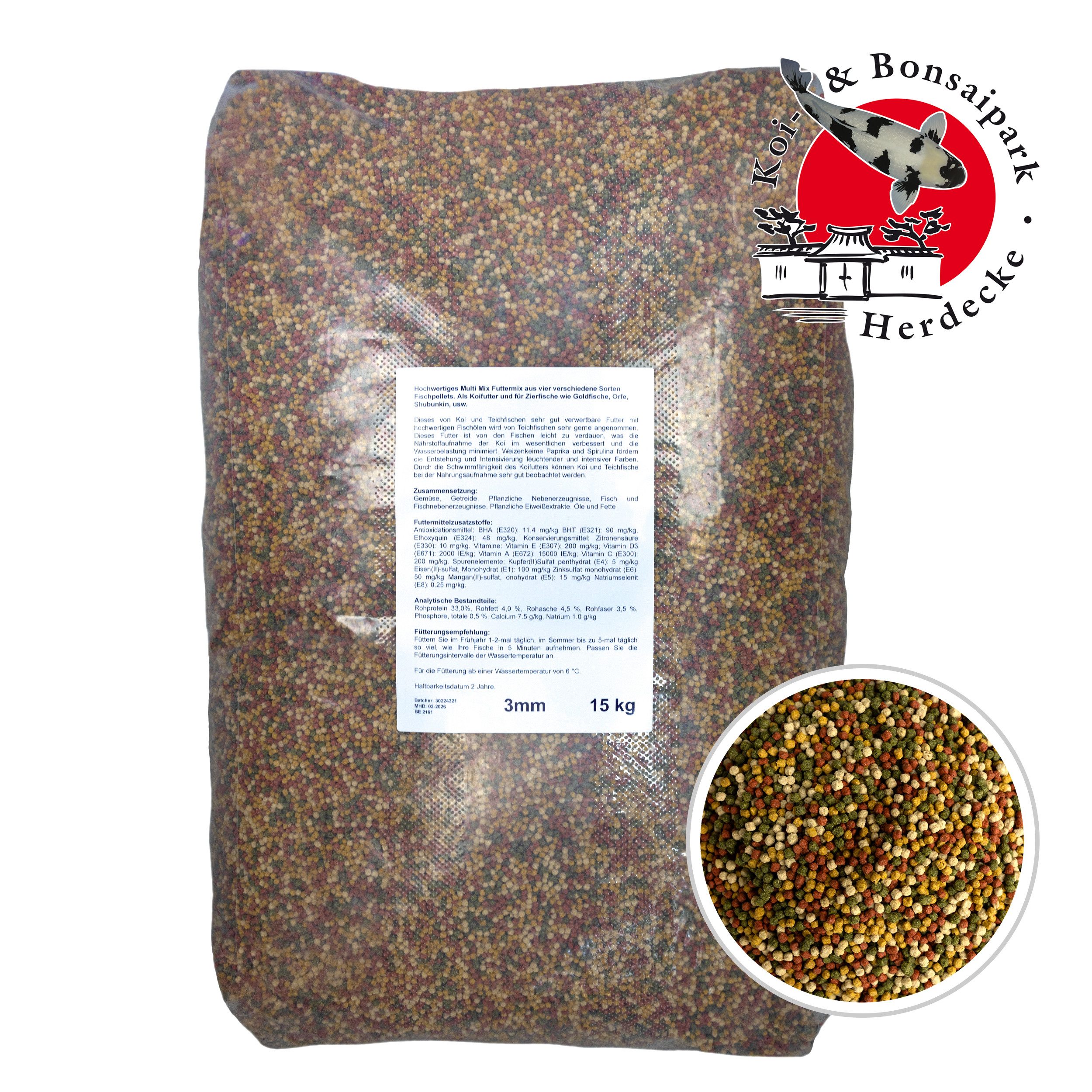 Koi Herdecke Premium Fischfutter Mix für Koi's | Schwimmende Pellets von 3 mm | geeignet für Zierfische - Goldfische - Orfe - Shubunkin | 15 Kilo Pack