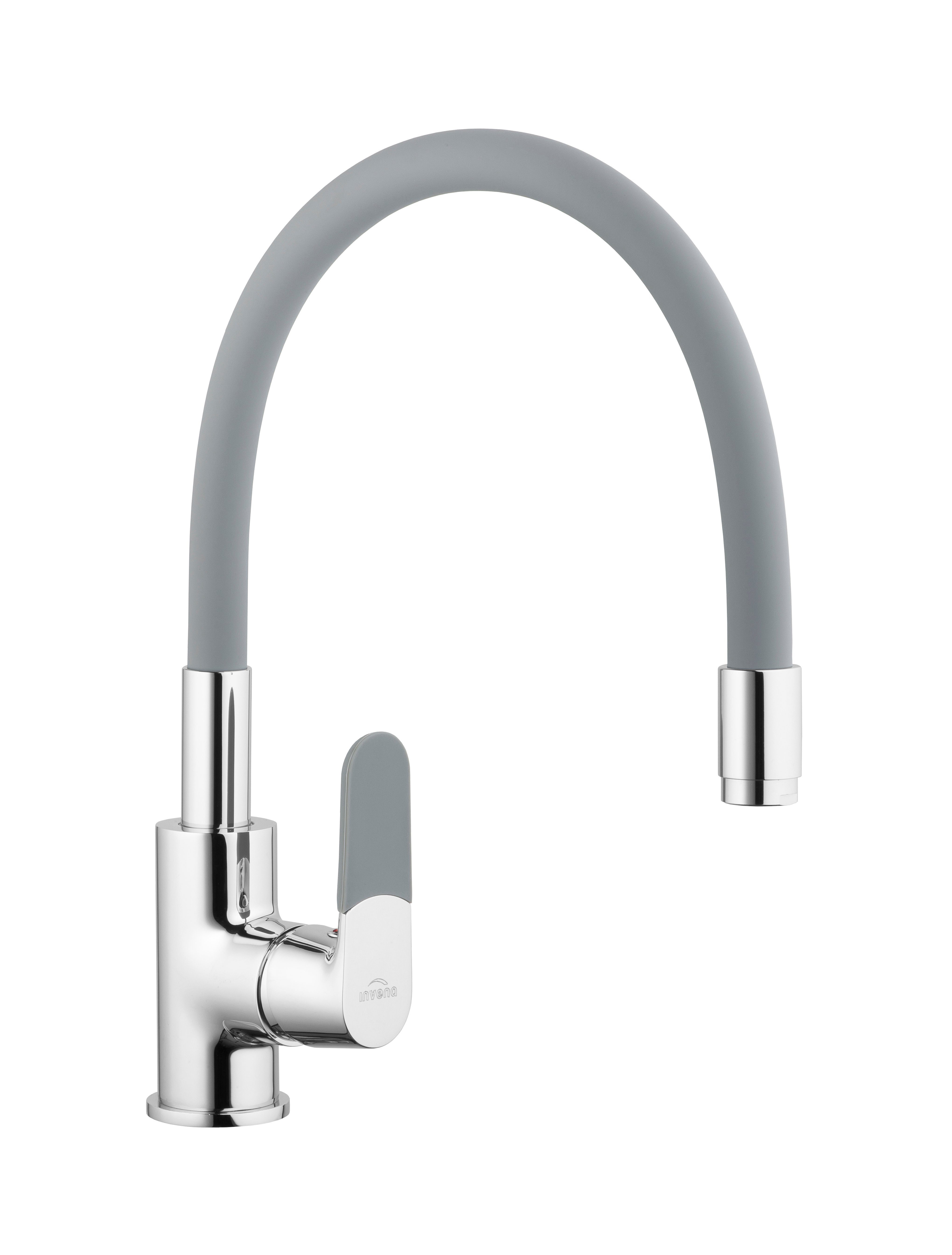 Die Spültischarmatur verfügt über einen flexiblen drehbaren Auslauf mit Formgedächtnis.