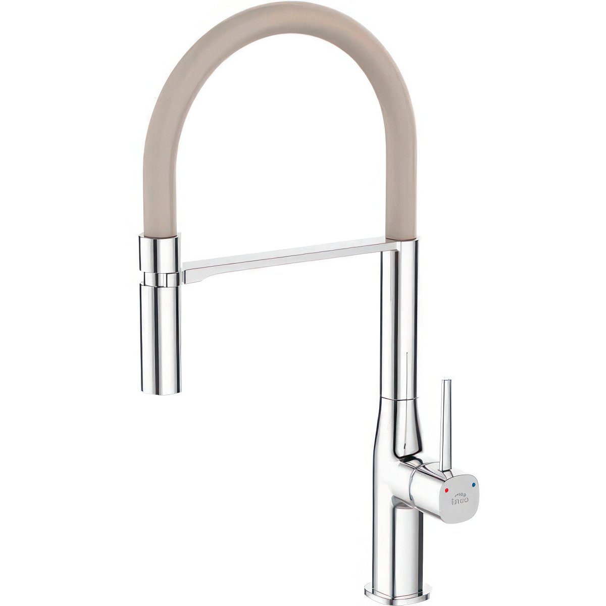 Die Küchenarmatur der Serie POLA ist in einer modernen Farbgebung Silber-Beige, die Stil und Eleganz in Ihre Küche verleiht.