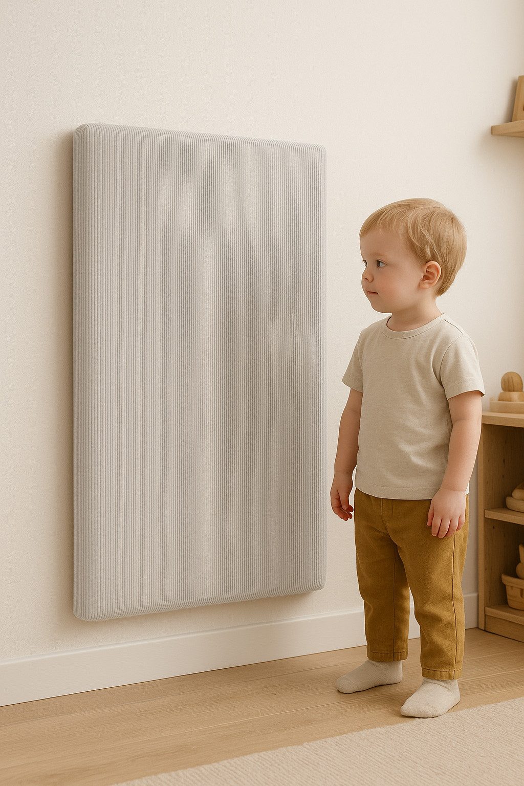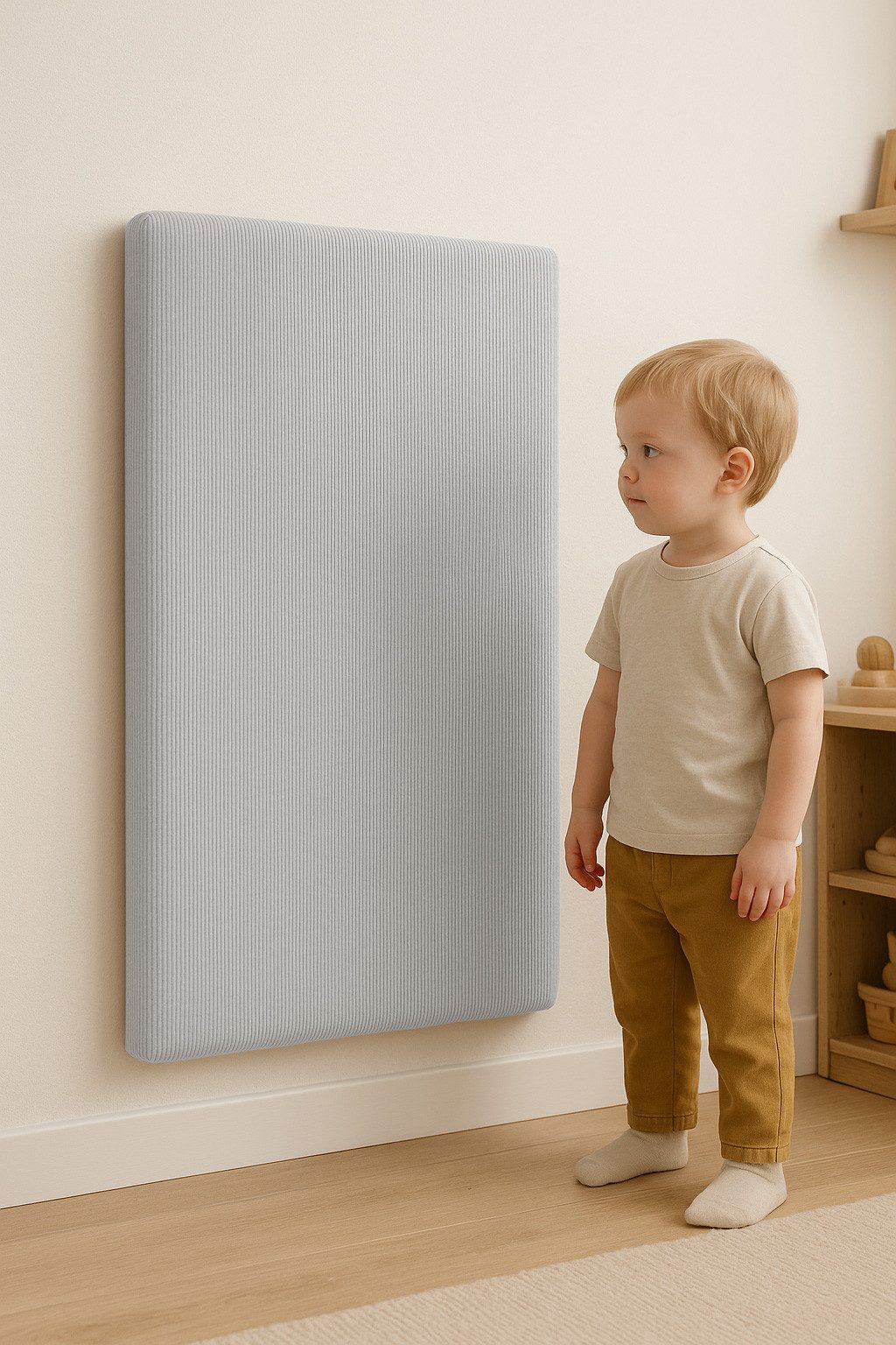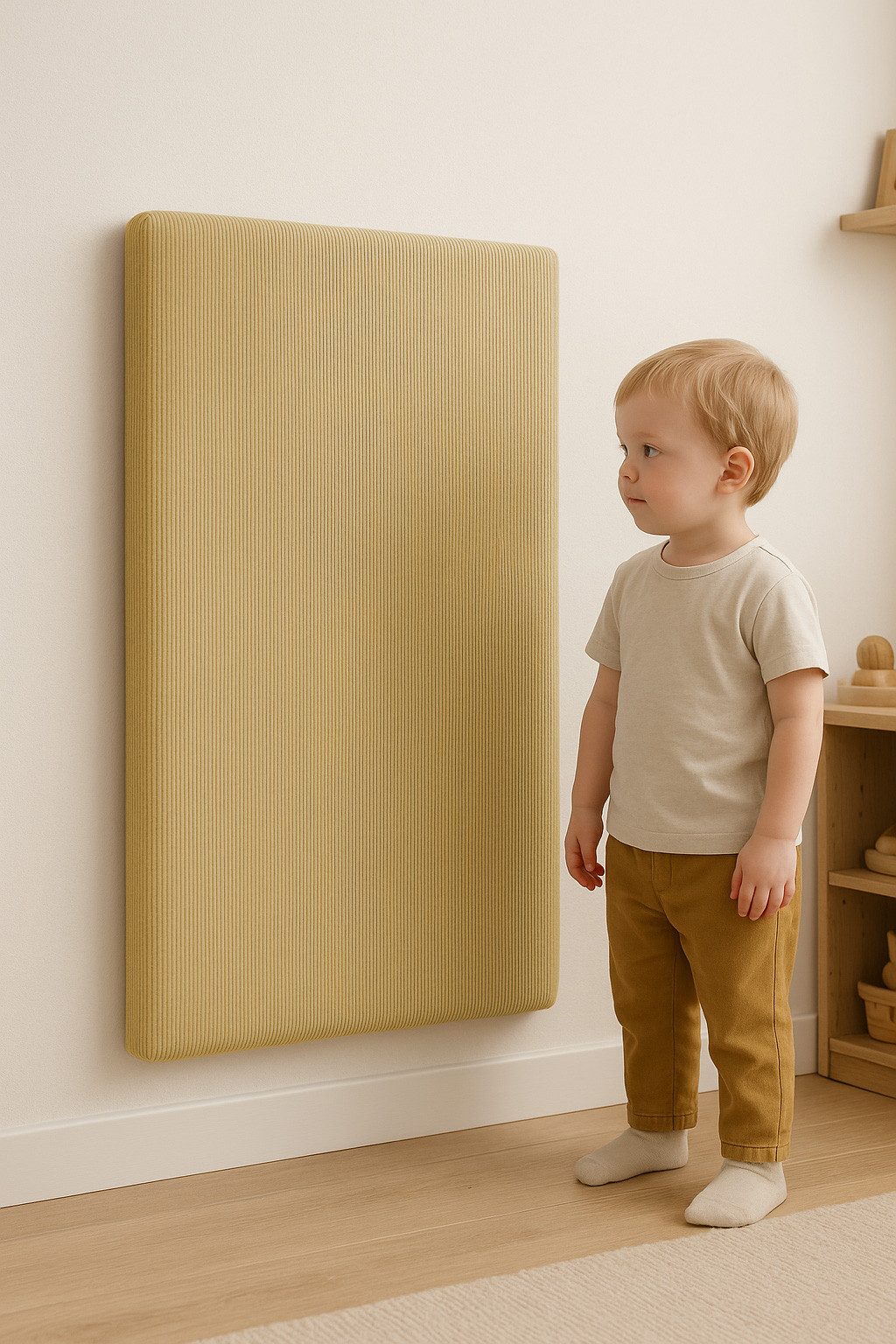 Sicher, gemütlich und kindgerecht Unsere Wandpolster mit Cordbezug bieten zuverlässigen Schutz vor harten Wänden und schaffen gleichzeitig eine behagliche Atmosphäre. Ideal für Familien, Kindertagesstätten oder Tagesmütter – dank abziehbarem und waschbarem Bezug bleibt alles hygienisch und pflegeleicht. Schutz & Wohlfühlfaktor Das Polster verbindet Sicherheit mit wohnlichem Design. Kinder können entspannt spielen, lesen oder toben, während der weiche Cordstoff Geborgenheit vermittelt und den Raum optisch aufwertet. Raumakustik & Komfort Neben dem Schutz verbessert das Polster auch die Klangqualität: Der Schaumstoffkern wirkt schalldämpfend und verringert störendes Echo. Die feine Cordstruktur verstärkt diesen Effekt zusätzlich, da ihre Rillen den Schall brechen und für eine angenehmere Akustik sorgen. Pflegeleicht & flexibel Die Bezüge lassen sich unkompliziert abnehmen und reinigen – ein Vorteil, wenn Hygiene im Alltag eine große Rolle spielt. Für unterschiedliche Einrichtungsstile sind mehrere Farben verfügbar, z. B. Hellblau, Senfgelb, Waldgrün, Marine oder Rosa. Individuelle Gestaltung Ob hoch- oder quer montiert: Die Polster passen sich verschiedenen Räumen an und eröffnen viele Einsatzmöglichkeiten – als Wandschutz in Gruppenräumen, im Flur hinter Sitzbänken, in Ruhezonen oder als dekoratives Kopfteil im Kinderzimmer. Produktdetails Größe: DIN A1 (84 × 59 × ca. 5 cm) Materialien: Holzplatte, Schaumstoffkern, Cordbezug Reinigung: Bezug abnehmbar & waschbar Befestigung: stabile Schraubmontage oder Klettsystem