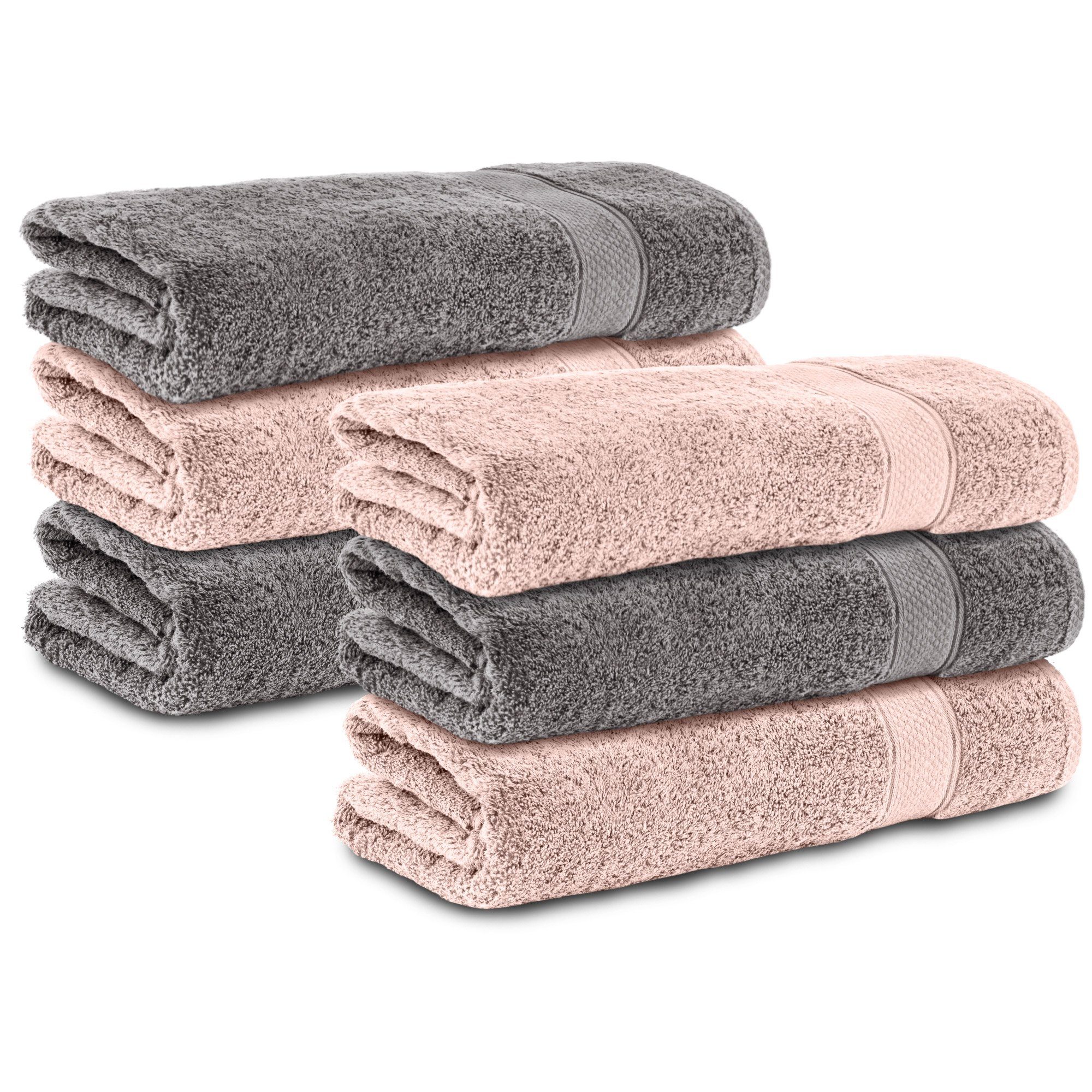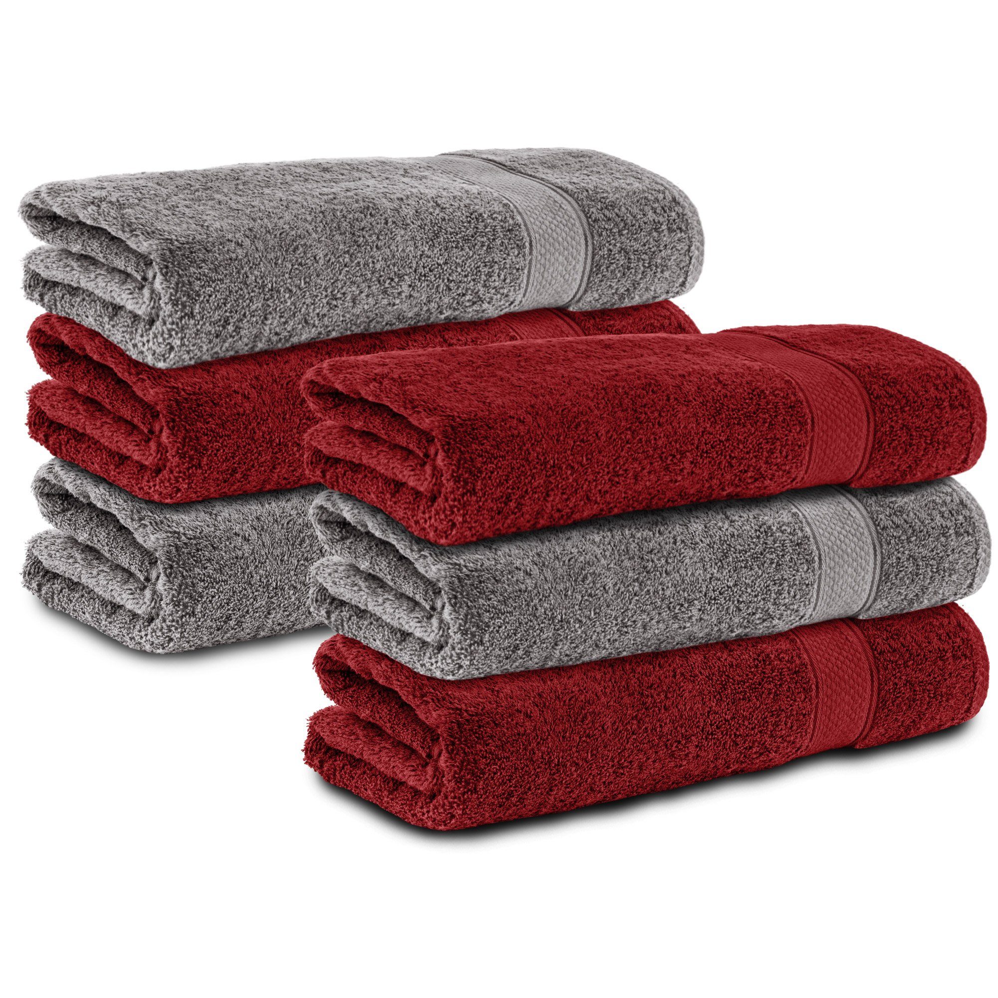 Enthält zwei Badetücher, 6-teiliges Handtuch-Set Hergestellt aus 100% Baumwolle Maße: 50 x 100 cm.