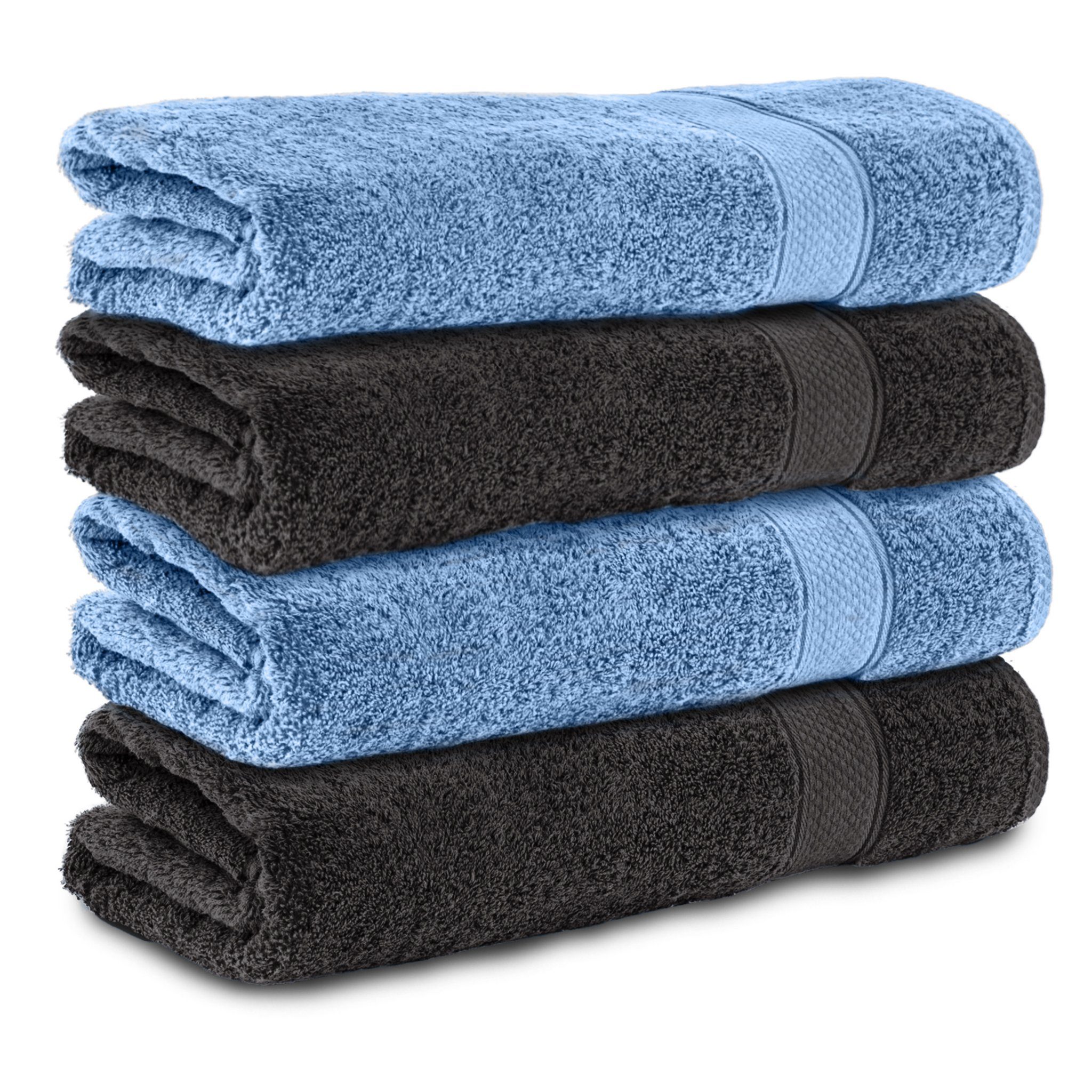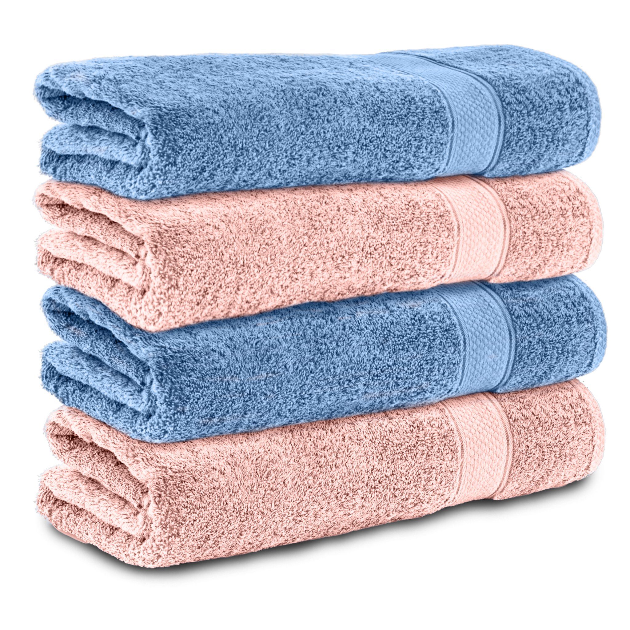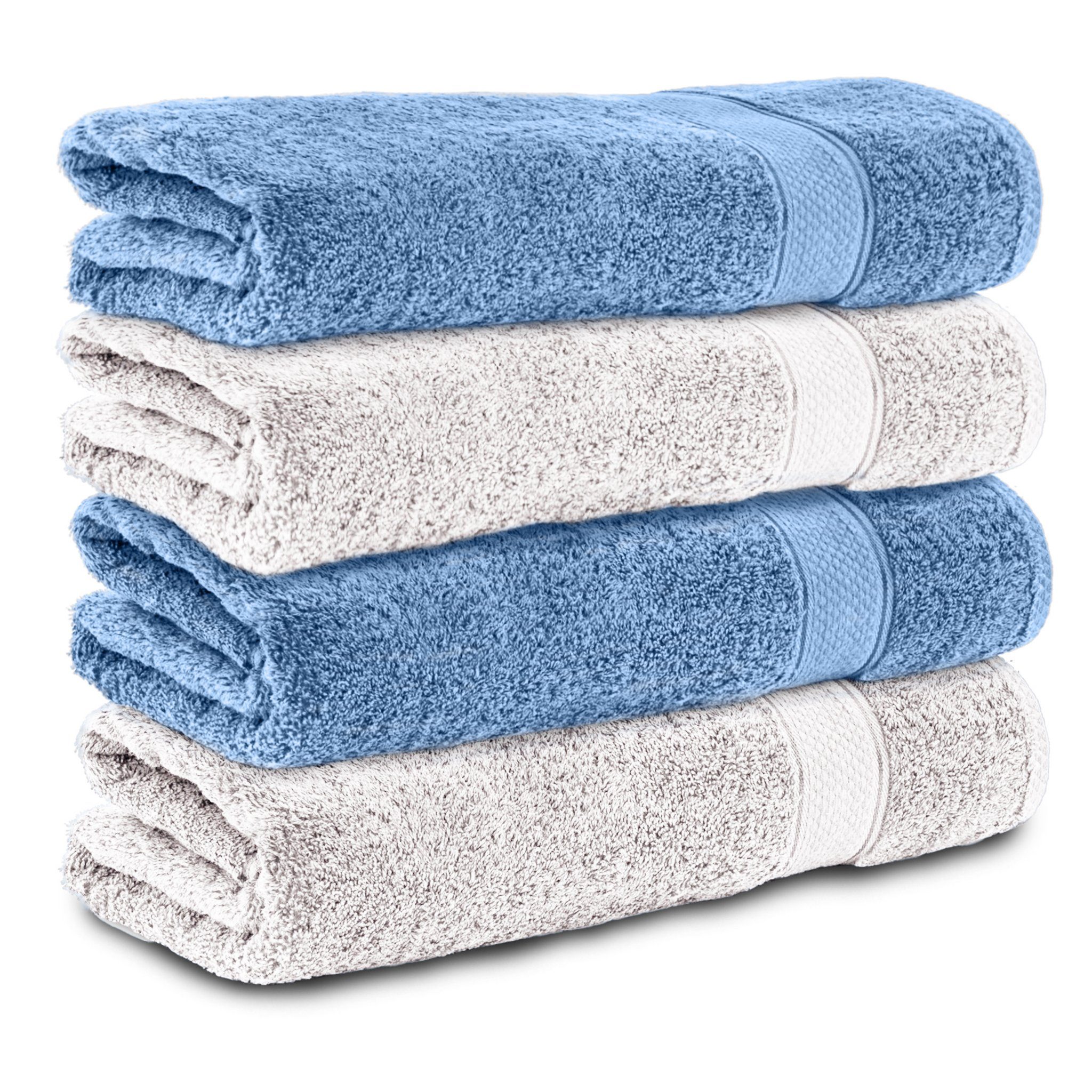 Enthält zwei Badetücher, 4-teiliges Handtuch-Set Hergestellt aus 100% Baumwolle Maße: 50 x 100 cm.