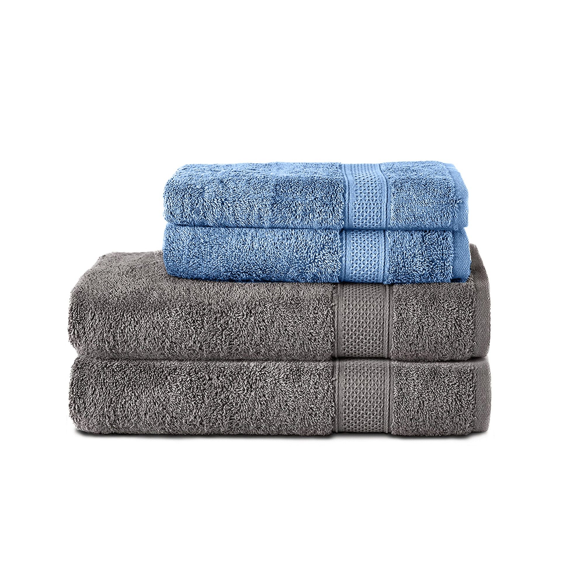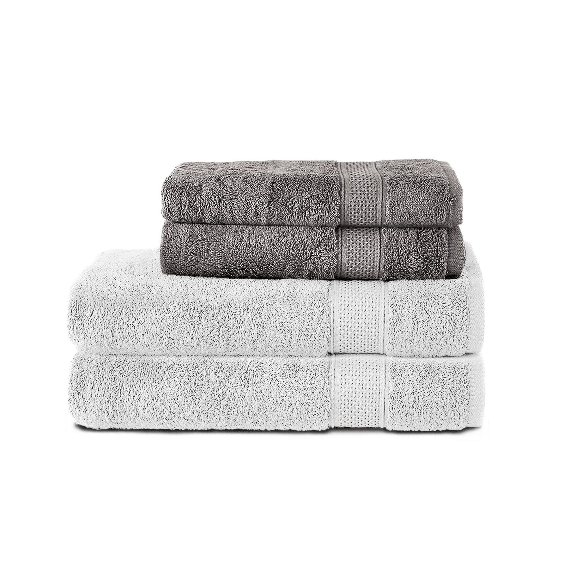 Enthält 6-teiliges Handtuch-Set Hergestellt aus 100% Baumwolle Maße: 4 Stück Handtücher 50 x 100 cm und 2 Stück Badetücher 70 x 140 cm.