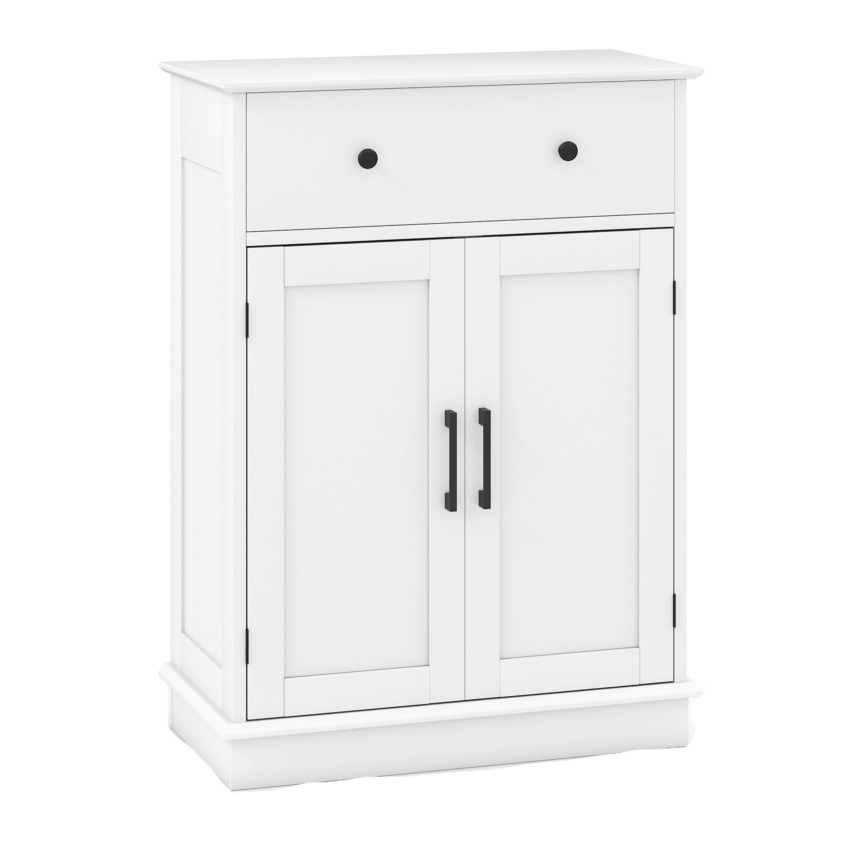 Entdecken Sie unseren kompakten Aufbewahrungsschrank, der sich perfekt für das Schlafzimmer, das Wohnzimmer oder das Arbeitszimmer eignet. Mit einer geräumigen Platte, einer großen Schublade und einem geschlossenen Schrank mit verstellbaren Einlegeböden bietet er Ihnen maßgeschneiderten Stauraum. Der Schrank ist aus robustem Holz mit einem stabilen Sockel gefertigt und mit einem sicheren Kippschutz, leichtgängigen Metallschienen für die Schubladen und hochwertigen Griffen und Scharnieren ausgestattet. Magnetische Verschlüsse sorgen dafür, dass die Türen geschlossen bleiben, und verbinden Funktionalität mit stilvollem Design. Der Holzschrank lässt sich gemäß der Anleitung leicht zusammenbauen und bietet eine ordentliche Aufbewahrungslösung, die zu jeder Einrichtung passt.