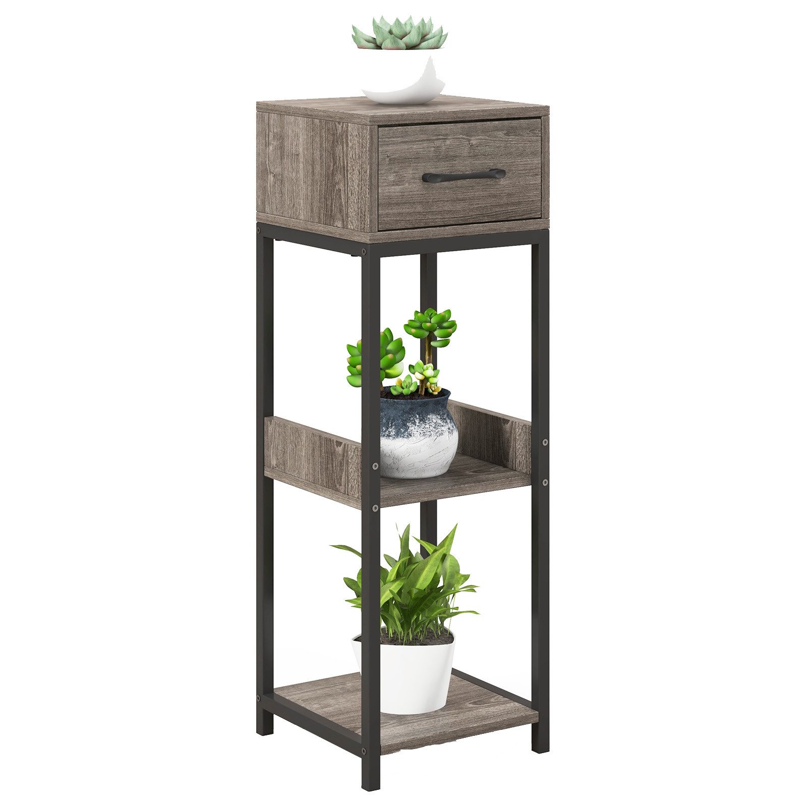 Mit 3 Ablageflächen und einer geräumigen Schublade können Sie mit diesem modernen Pflanzenständer Pflanzen und andere Dekorationen ganz einfach organisieren. Er ist aus hochwertigen Materialien gefertigt, darunter ein stabiler Rahmen und robuste Metallrohre sowie 2 Kippschutzvorrichtungen, und bietet so Haltbarkeit und Sicherheit. Außerdem besticht dieser Pflanzenständer durch ein modernes Aussehen und durchdachte Details wie einen praktischen Schubladengriff für einfachen Zugriff. Er ist pflegeleicht und hat eine glatte Oberfläche, was bedeutet, dass er Stil und Funktionalität nahtlos miteinander verbindet. Daher eignet er sich perfekt für verschiedene Räume wie Wohnzimmer, Balkon, Schlafzimmer oder Arbeitszimmer.