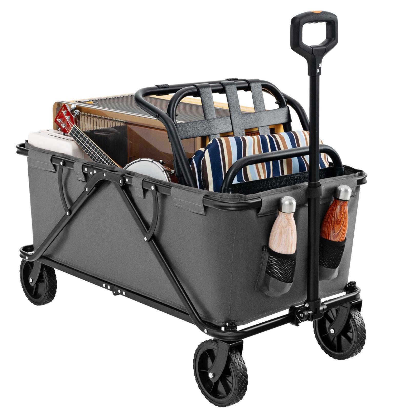 (мы ещё работаем над переводом, извините за неудобство): Entdecken Sie die Vielseitigkeit und Benutzerfreundlichkeit des zusammenklappbaren Wagens, ein unverzichtbares Werkzeug für Outdoor-Abenteuer und alltägliche Aufgaben gleichermaßen. Mit einer verstellbaren Aluminium-Zugstange lässt sich dieser Wagen von 74-101 cm verstellen und so an unterschiedliche Benutzergrößen anpassen, um ein komfortables Erlebnis zu gewährleisten. Er besteht aus einem robusten Metallrahmen und 600D Oxford-Gewebe und trägt bis zu 100 kg. Mit den 4 großen Universalrädern unseres Wagens können Sie mühelos über verschiedene Oberflächen fahren. Er bietet ein großzügiges Stauvolumen von 170 l und verfügt über nützliche Funktionen wie 2 Getränkehalter und eine Aufbewahrungstasche für persönliche Gegenstände. Eine zuverlässige Hilfe für eine breite Palette von Outdoor- und Heimaktivitäten!