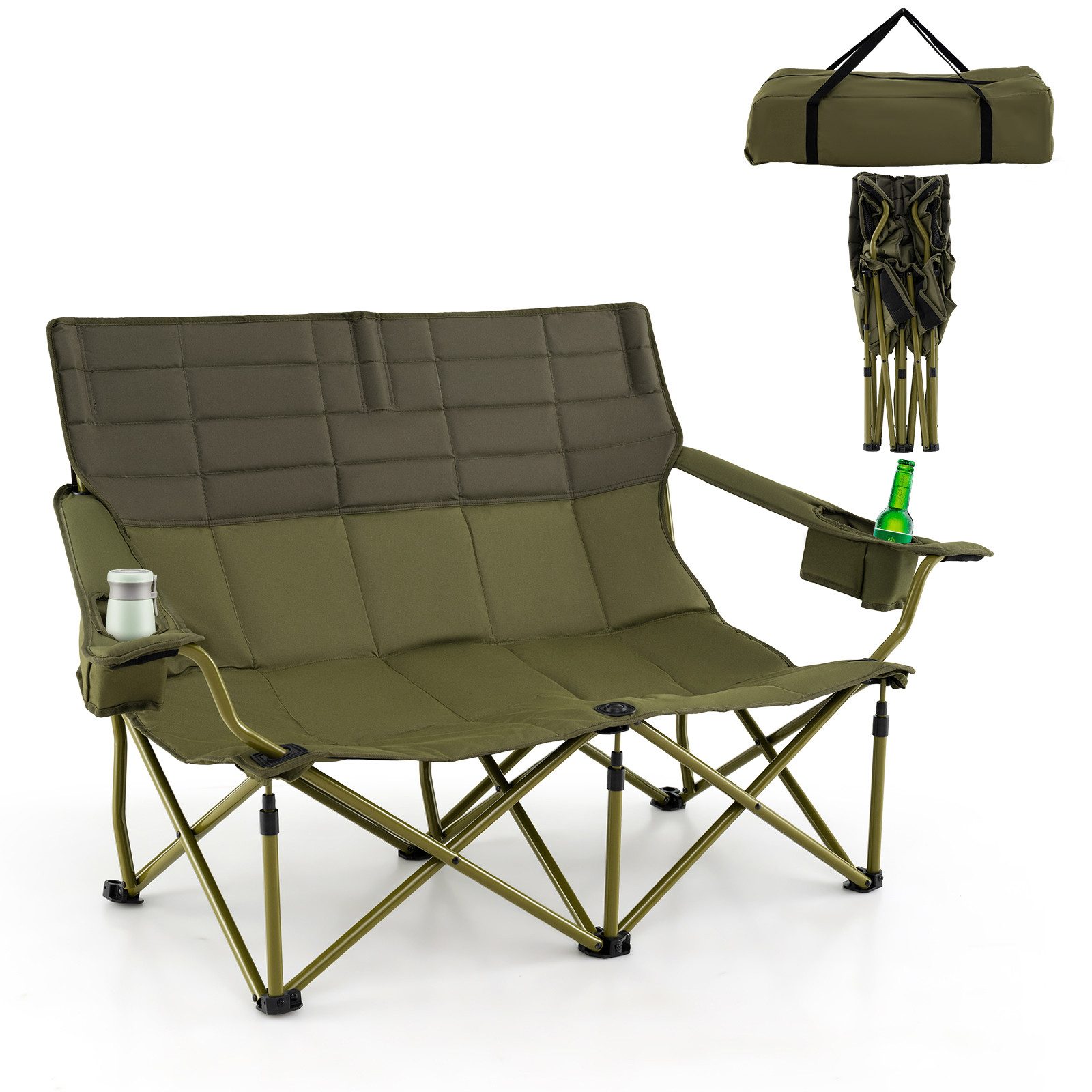 Entdecken Sie den Komfort und die Bequemlichkeit unseres zusammenklappbaren Campingstuhls für zwei Personen, entwickelt für diejenigen, die den Aufenthalt im Freien genießen möchten, ohne auf Komfort zu verzichten. Hergestellt aus strapazierfähigem Oxford-Gewebe, weichem Schaumstoff und einem robusten Metallrahmen, ist dieser Stuhl die ideale Wahl für Picknicks, Camping und alle Outdoor-Aktivitäten. Der innovative Stuhl bietet nicht nur ausreichend Platz für zwei Erwachsene, sondern verfügt auch über ein praktisches Faltmechanismus, der dank seiner integrierten Tragetasche einen leichten Transport und eine einfache Aufbewahrung ermöglicht. Darüber hinaus sind seine Armlehnen verstellbar und bieten mit einem Sicherungsgurt eine optimale Nutzungserfahrung.