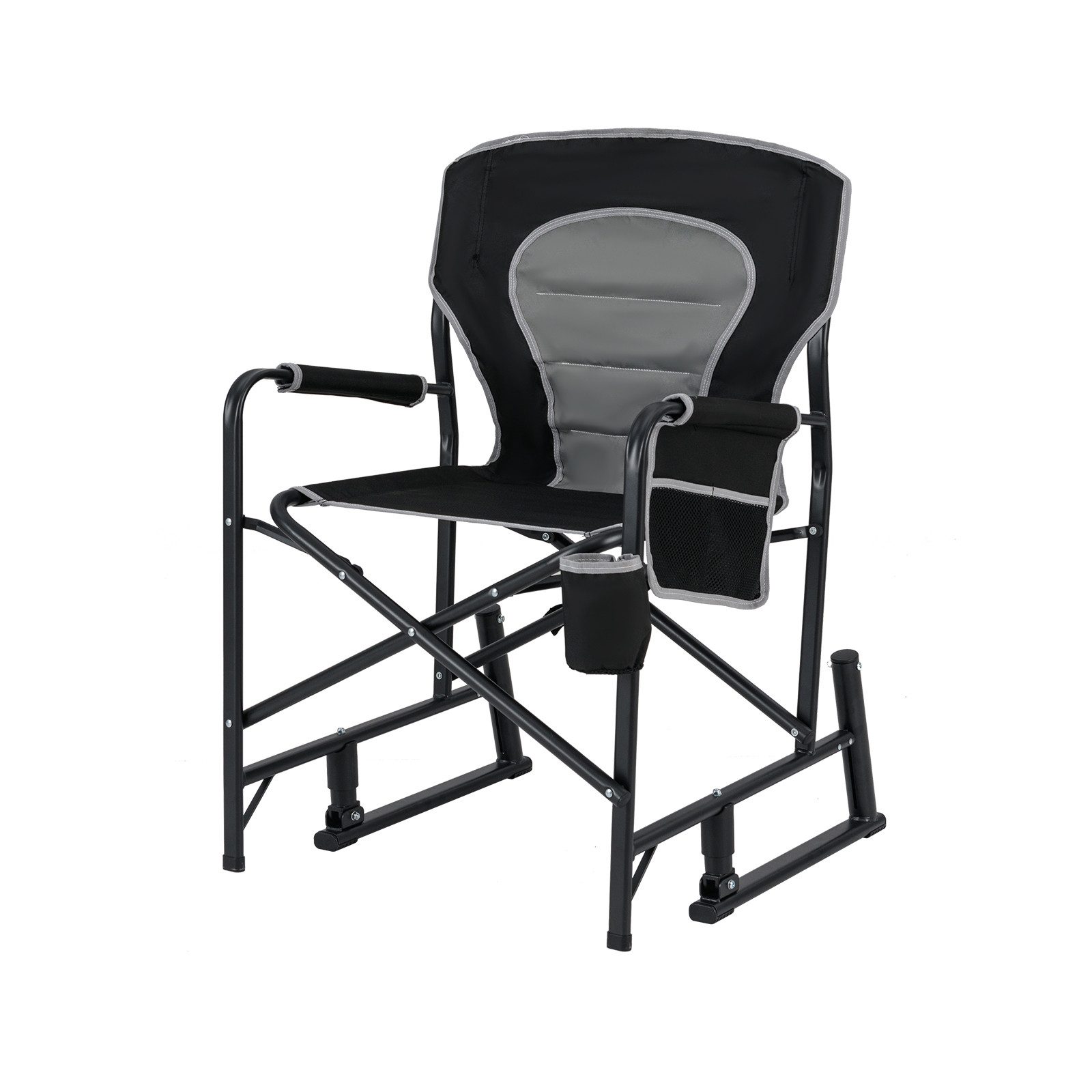 Entwickelt, um ultimativen Komfort im Freien zu bieten, kommt unser ergonomischer Campingstuhl mit einem Doppel-Feder-Schwingmechanismus. Hergestellt aus robustem, wetterfestem Oxford-Gewebe und einem stabilen Metallrahmen, hält er bis zu 150 kg. Das Design umfasst ein gepolstertes Rückenteil, komfortable Armlehnen, einen Becherhalter und eine Seitentasche. Einfach faltbar, kompakt und mit einem Griff ausgestattet, ist dieser Stuhl ideal für alle Ihre Outdoor-Aktivitäten – von Sportveranstaltungen bis hin zu Picknicks und entspannten Momenten im Garten.
