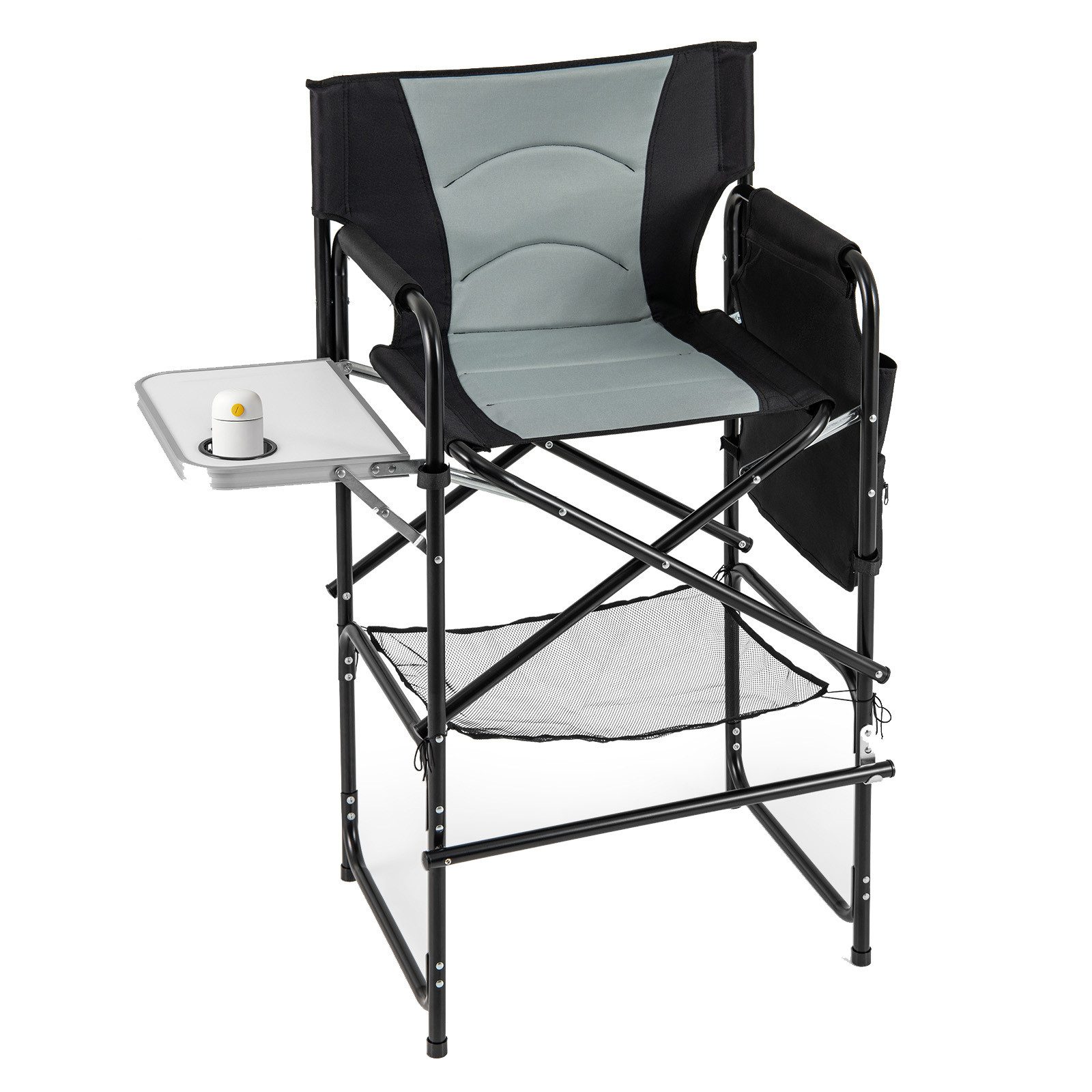 Sie suchen eine bequeme Möglichkeit, sich unterwegs hinzusetzen? Dieser Regiestuhl aus langlebigem Oxford-Stoff bietet überlegenen Komfort mit gepolsterten Armlehnen und einer eingebauten Fußstütze. Sorgen Sie für Ordnung mit einem klappbaren Beistelltisch, einem Getränkehalter und mehreren Aufbewahrungsmöglichkeiten. Seine stabile Metallkonstruktion trägt bis zu 150 kg, während rutschfeste Fußpolster für Stabilität sorgen. Der tragbare Klappstuhl ist perfekt für Camping, Filmaufnahmen, Konzerte und mehr und lässt sich leicht transportieren und aufstellen. Verbessern Sie Ihr Sitzerlebnis im Freien noch heute mit unserem vielseitigen und bequemen Regiestuhl!