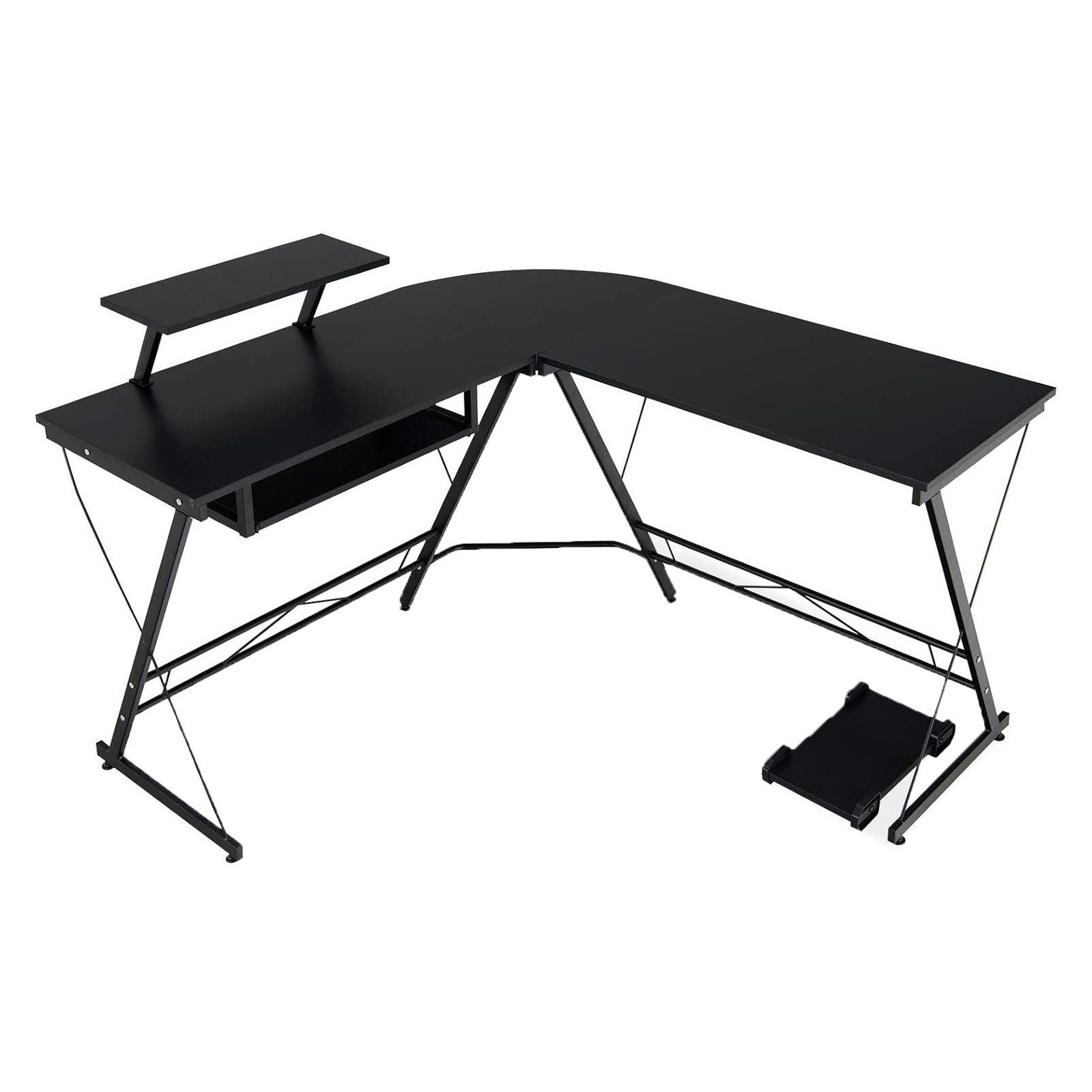 Unser Computertisch besteht aus einem beschichtetem Stahlrahmen und hochwertigem MDF, was eine lange Lebensdauer und Stabilität gewährleistet. Dieser L-förmige Computertisch ist mit einer abnehmbaren Monitorablage ausgestattet, die je nach Bedarf auf beiden Seiten montiert werden kann, einer ausziehbaren Ablage unter dem Schreibtisch, um Ihre Tastatur unterzubringen, und einem beweglichen Host-Ständer unter dem Schreibtisch. Er kann in jeder Ecke ihres Zimmers platziert werden und nutzt den verfügbaren Platz optimal aus. Dies sorgt für einen bestmöglichen Arbeitsbereich. Sein einfaches, modernes und platzsparendes Design ist perfekt für Ihr Wohnzimmer, Schlafzimmer, Arbeitszimmer und Heimbüro