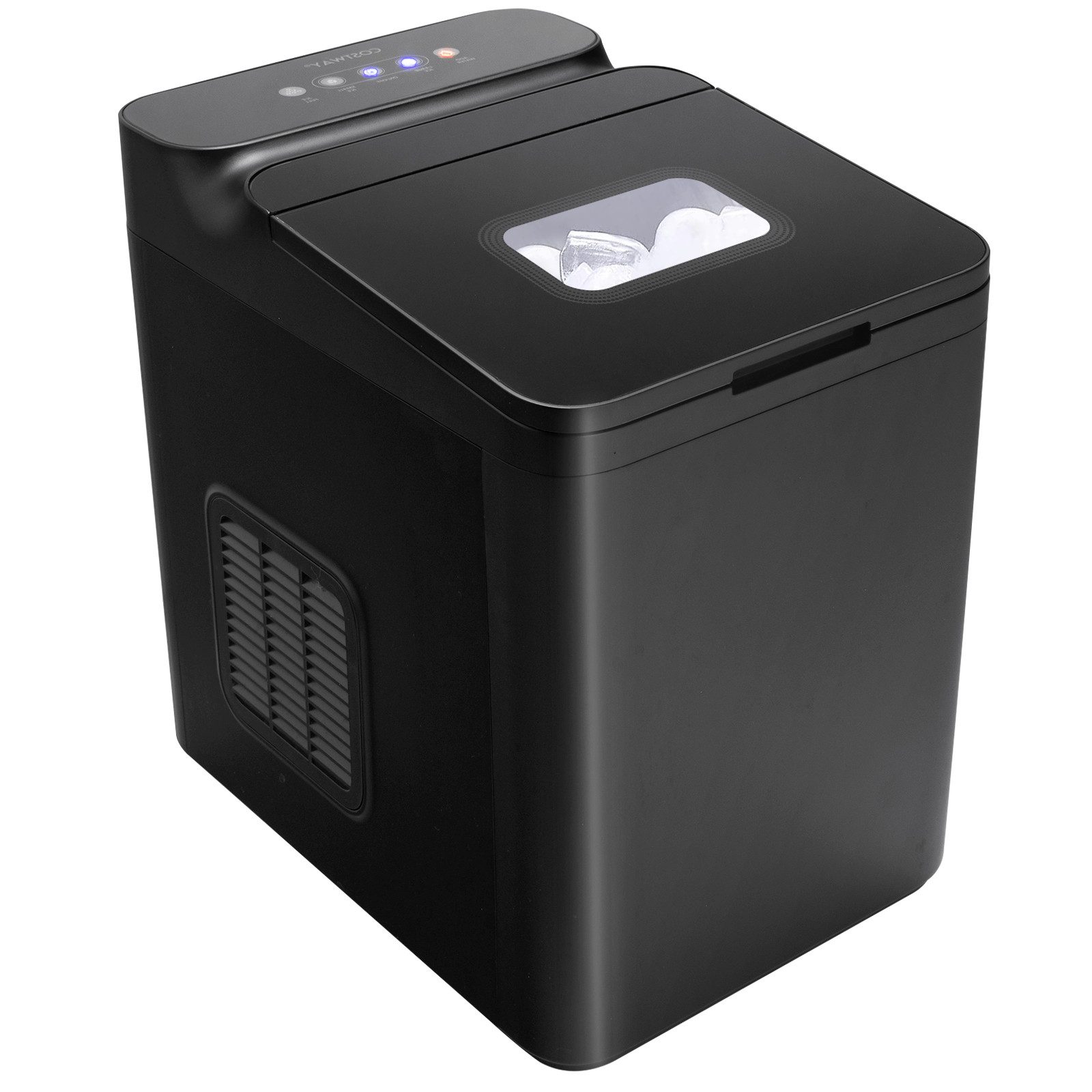 Der Ice Maker kann 12-15 kg Eiswürfel pro Tag für Sie produzieren. Die Eiswürfel sind in zwei Größen erhältlich. Sie können den Eiswürfelbereiter über das LED-Display und den Touchscreen starten, der 1,5 L Wassertank erspart Ihnen das häufige Nachfüllen von Wasser. Nach dem Gebrauch können Sie die Starttaste 5 Sekunden lang gedrückt halten, um die 30-minütige Selbstreinigungsfunktion einzuschalten. Der Boden ist mit Entleerungsstopfen zum einfachen Ablassen ausgestattet. Der Eisbereiter verfügt über eine Wassermangelwarnung und eine Warnung über volles Eis. Die obere Abdeckung der Eismaschine besteht aus klarem Glas, sodass Sie den Produktionsprozess der Eiswürfel sehen können. Für Ihren Komfort ist auch eine Eisschaufel im Lieferumfang enthalten. Da das Gerät leicht und platzsparend ist, ist es ideal für Zuhause, Büros, Bars und mehr.