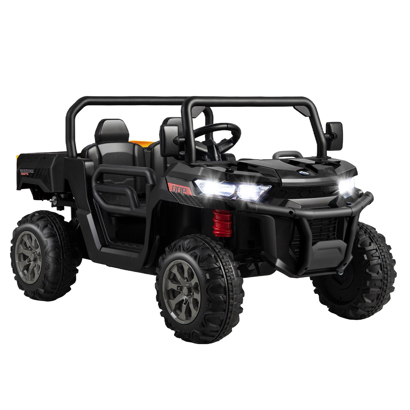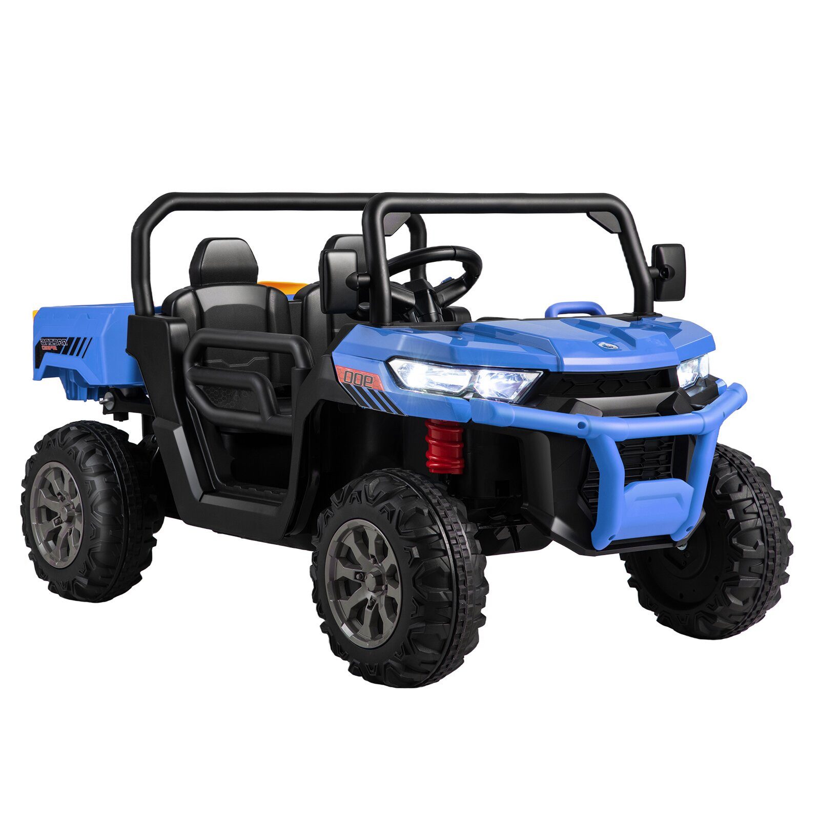 Unser Kinderauto ist mit 2 Sitzplätzen ausgestattet und wird mit einem Sicherheitsgurt geliefert, der Kinder während der Fahrt schützen kann. Das Kippmuldendesign lässt die Kinder die wahre Freude am Be- und Entladen erleben. Dieses 12V Kinderauto profitiert von 2 leistungsstarken Motoren und die Höchstgeschwindigkeit beträgt bis zu 8 km/h. Es bietet Ihren Kindern zusätzlichen Spaß durch die integrierte Musik, den AUX-Eingang und den USB-Anschluss. Dieses Elektroauto kann nicht nur von Kindern über Fußpedal und Lenkrad bedient werden, sondern auch manuell von den Eltern mit der Fernbedienung. Es ist ein wunderbares Geschenk zum Geburtstag und Weihnachten Ihrer Kinder.