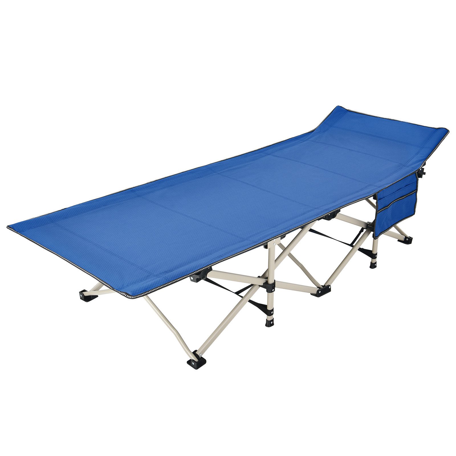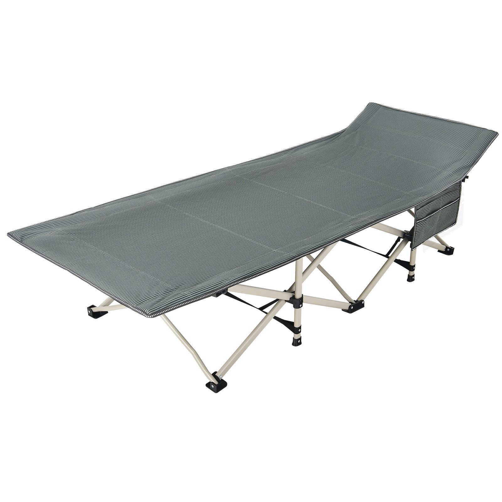 Wollen Sie ein praktisches Campingbett? Unser Campingbett ist eine gute Wahl. Dank der großen Abmessungen ist dieses Campingbett für die meisten Erwachsenen geeignet. Die Kopfneigung passt sich der Körperform besser an als andere marktübliche Ausführungen. Die Sechs-Punkt-Stützstruktur und der X-förmige Rahmen sorgen für eine stabile Struktur. Die pulverbeschichteten Stahlrohre bieten einen wirksamen Rostschutz. Das Material aus Oxford-Stoff ist strapazierfähig und wetterbeständig. Das faltbare Design und die Tragetasche machen es einfach, dieses Campingbett überall hin mitzunehmen. Ob auf dem Balkon, der Terrasse, im Büro oder am Strand, am Pool, auf der Wiese usw., dieses Campingbett ist perfekt.