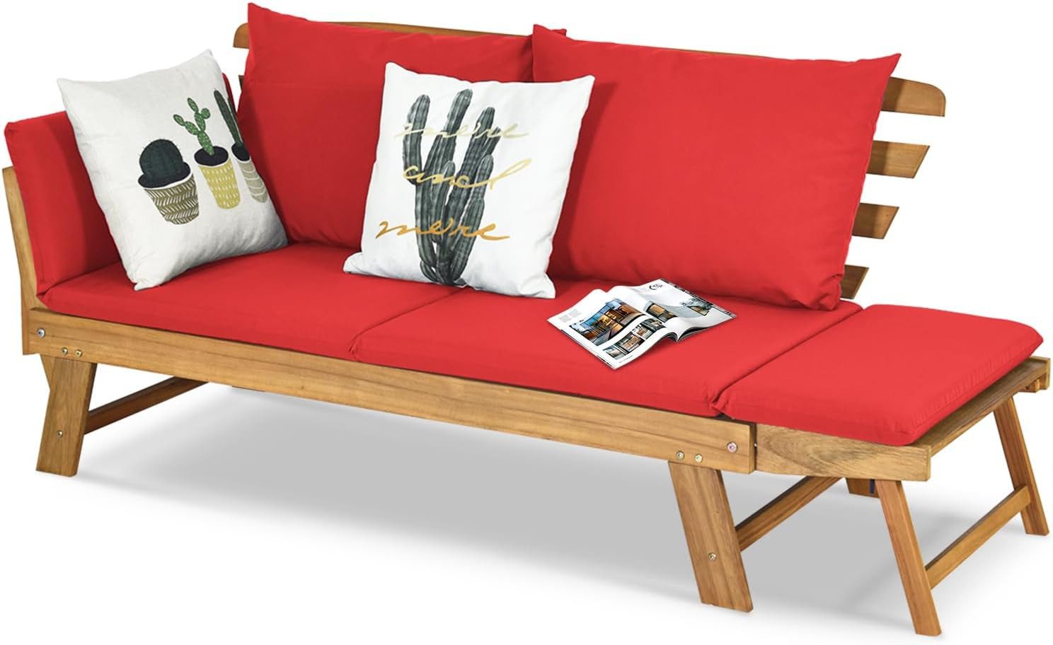 Dieses Möbelstück wurde für den Mehrzweckgebrauch gefertigt und eignet sich ideal als Zweiersofa, Sonnenliege oder sogar als Gästebett für Besucher. Diese Terrassenliege ist aus Akazienholz gefertigt, das eine natürlich feine Textur und eine charmante Ästhetik erzeugt. Diese starke Witterungsbeständigkeit und natürliche Haltbarkeit machen es perfekt für outdoor. Die dicken und abnehmbaren Rücken-, Sitz- und Armkissen sorgen für Sitz- und Liegekomfort. Die Rückenkissenbezüge lassen sich leicht abnehmen und waschen. Dieses umwandelbare Sofa ist eine modische Ergänzung für jeden Wohnraum und verleiht jedem Außenbereich Ihres Hauses einen Charme.