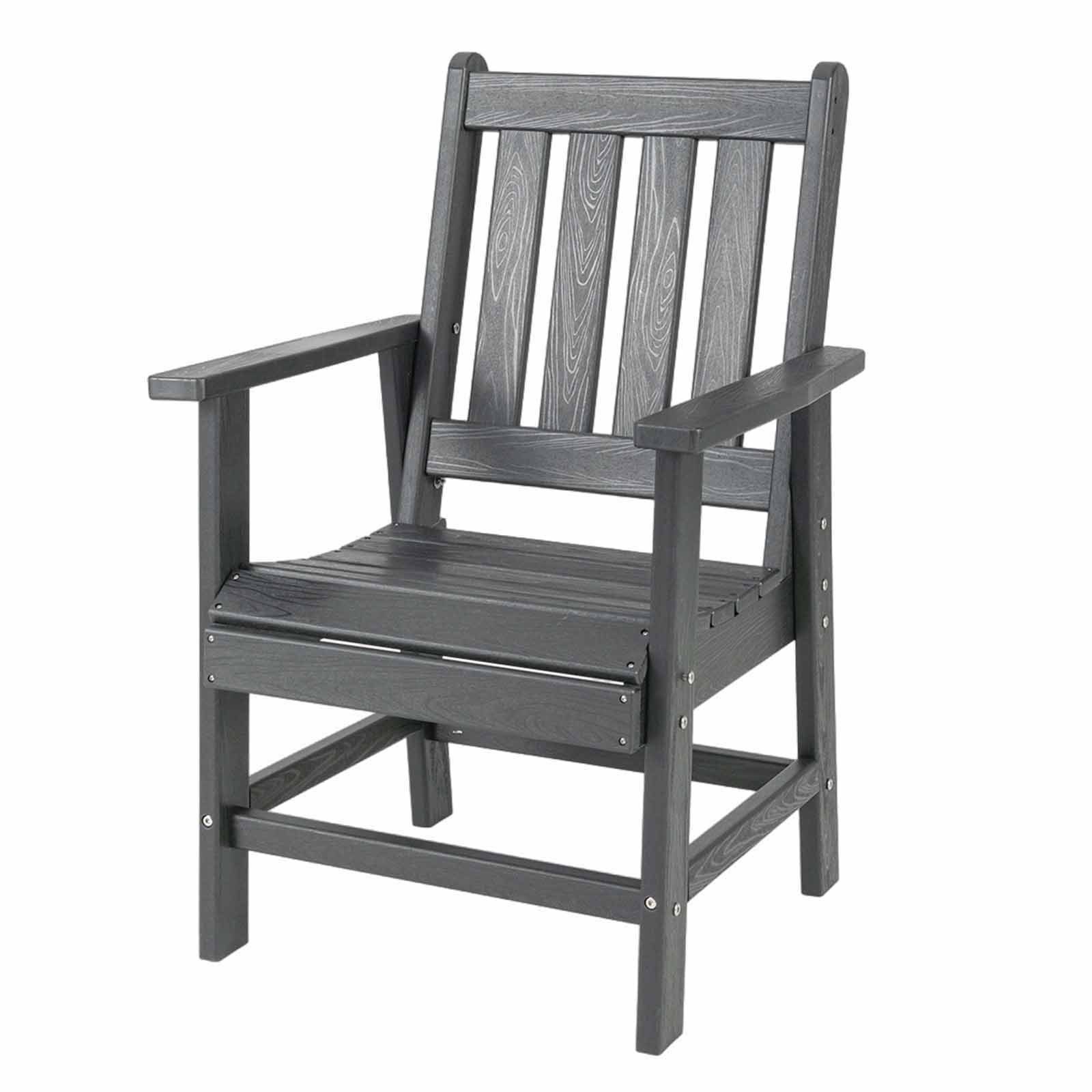 Genießen Sie das Leben im Freien in perfekter Harmonie mit der Natur und dem Komfort dank unseres Gartenstuhls. Dieser Outdoor-Stuhl hat ein Design, das die Holzmaserung imitiert und die natürliche Schönheit ohne jeglichen Wartungsaufwand beibehält. Der breite Sitz und die ergonomische Rückenlehne ermöglichen langes Sitzen ohne Ermüdung, während die verstärkte Struktur mit Querbalken Stabilität und Sicherheit garantiert. Das spezielle Lamellendesign sorgt für schnellen Wasserablauf und das wetterfeste HDPE-Material widersteht Sonne und Regen.