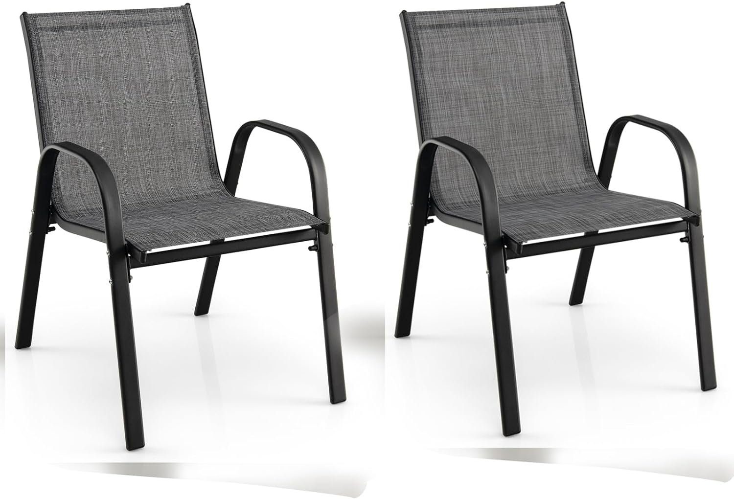 Suchen Sie die perfekte Gartenstuhlgarnitur? Unser Set aus 2 Gartenstühlen ist perfekt für Sie! Der wetterfeste Stoff macht diese Stühle perfekt für den Einsatz im Freien. Das atmungsaktive Material sorgt dafür, dass Sie sich auch im Sommer nicht zu heiß fühlen. Der pulverbeschichtete Stahlrahmen ist sehr stark und stabil. Die breite Rückenlehne und der Sitz stützen Ihren Rücken und Ihre Hüften gut ab und verringern die Ermüdung. Außerdem lassen sich die Gartenstühle dank ihrer Stapelbarkeit leicht und platzsparend stapeln. Sie können dieses Set von Gartenstühlen auf Terrassen, in Gärten usw. aufstellen.