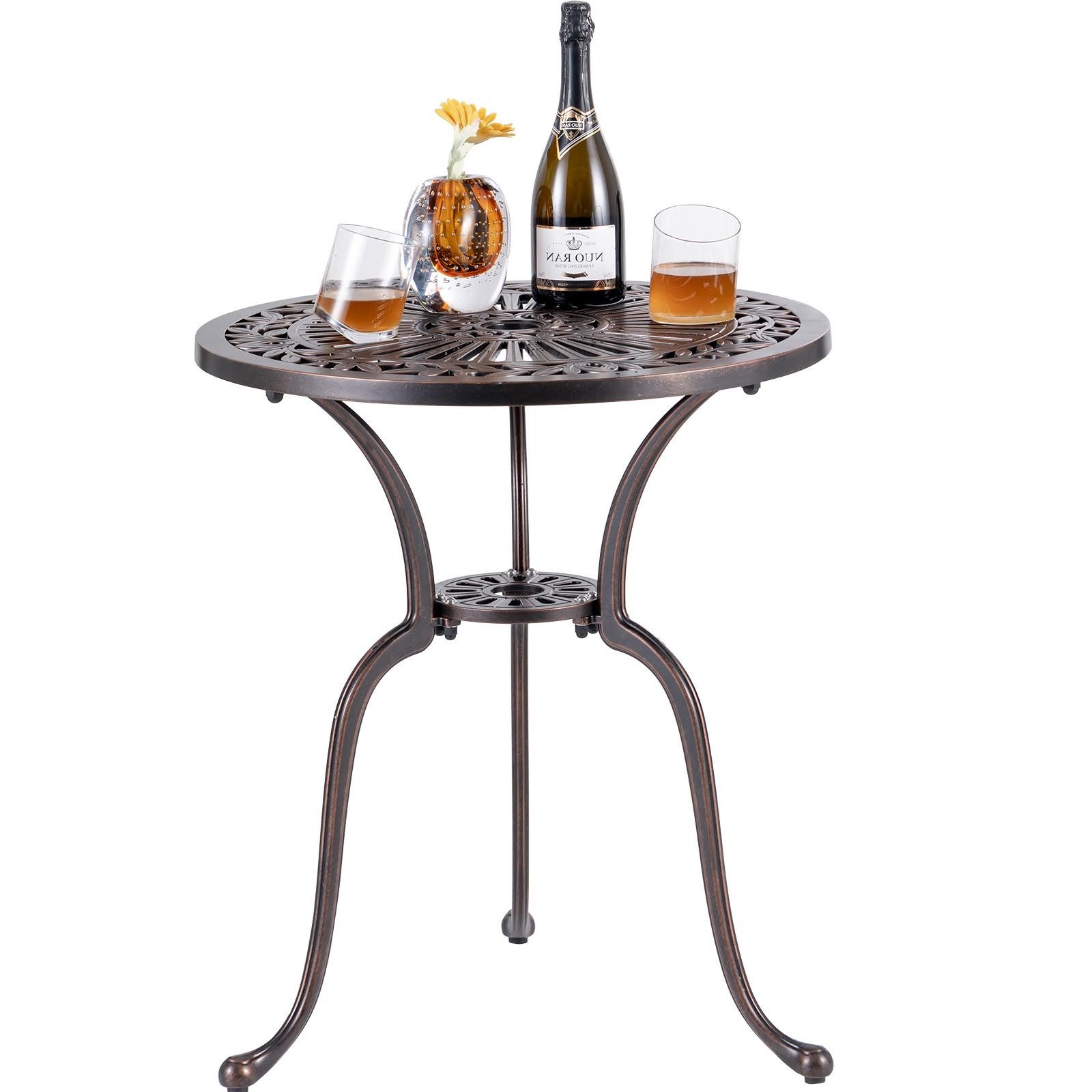 Verwandeln Sie Ihren Garten, Ihren Hof oder Ihre Terrasse mit dem Gartentisch. Hergestellt aus strapazierfähigem Aluminiumguss, gewährleistet dieser runde Bistrotisch eine herausragende Robustheit und Stabilität, die lange halten kann. Zusätzlich machen die retro Hohlmuster und die gebogenen Beine mit einem Sinn für Design diesen Esstisch charmanter. Auf der Tischplatte befindet sich sogar ein 5 cm großes Schirmloch, falls Sie am Pool zusätzlichen Sonnenschutz benötigen.