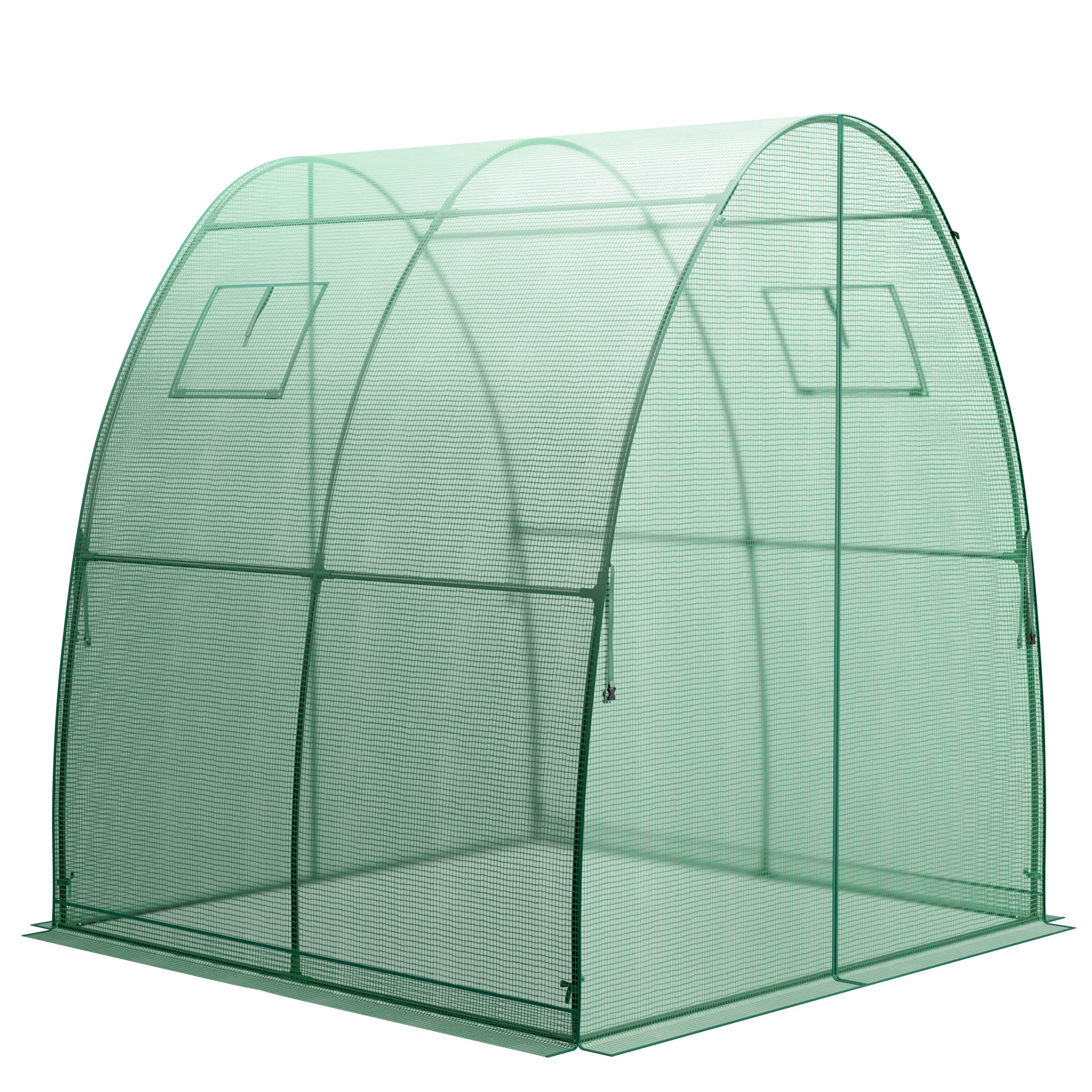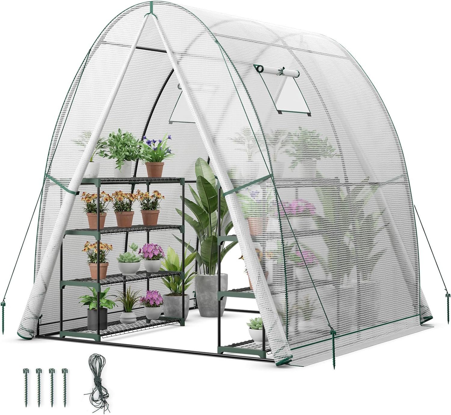 Mit diesem Gewächshaus können Sie das ganze Jahr über die Freuden der Gartenarbeit genießen. Das Gewächshaus verfügt über eine hochwertige PE-Abdeckung, die eine optimale Isolierung gewährleistet und eine warme Wachstumsumgebung für eine Vielzahl von Pflanzen schafft. Der robuste Metallrahmen ist mit einer rostbeständigen Sprühbeschichtung versehen, um die Lebensdauer des Geräts zu verlängern. Im Lieferumfang dieses Gewächshausbausatzes sind außerdem 4 Erdnägel und Windschutzseile enthalten, die für zusätzliche Stabilität sorgen und sicherstellen, dass Ihr Gartenhäuschen auch bei Wind und Wetter intakt bleibt. Dieses Gartengewächshaus ist eine vielseitige Ergänzung für jeden Außenbereich und sorgt für ein angenehmes Gartenerlebnis.