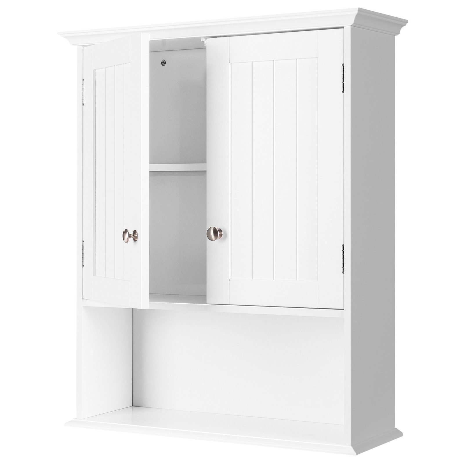 Ärgern Sie sich immer noch über den begrenzten Platz in Ihrem Zimmer oder Ihrer Küche? Montieren Sie unseren Schrank an der Wand, um den Platz Ihres Zimmers zu maximieren. Der wandmontierte Aufbewahrungsschrank verfügt über ein verstellbares Innenregal mit 3 Höheneinstellungen, um Ihren individuellen Aufbewahrungsanforderungen gerecht zu werden, und bietet ausreichend Platz für Ihre täglichen Bedarfsartikel in verschiedenen Größen. Die wasserdichte Oberfläche verhindert, dass es durch Feuchtigkeit schimmelt, wodurch es haltbarer und langlebiger wird. Der zweitürige Wandschrank eignet sich hervorragend für den Waschraum, die Waschküche und die Gästetoilette.