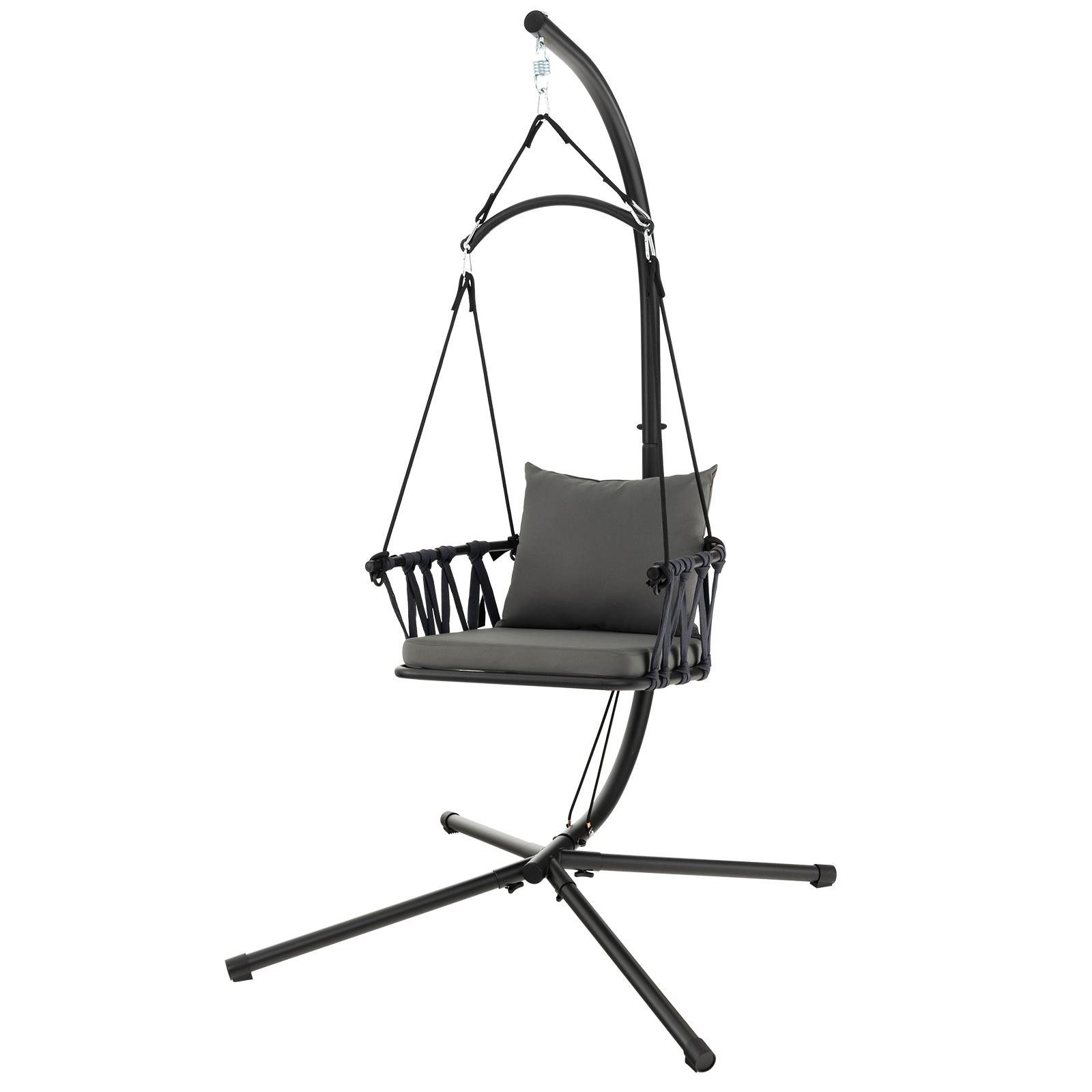 (мы ещё работаем над переводом, извините за неудобство): Suchen Sie eine vielseitige und bequeme Sitzmöglichkeit für Ihren Außenbereich? Halten Sie kurz inne! Unser Hängeschaukelstuhl mit Ständer ist die perfekte Ergänzung für jede Terrasse, jeden Garten, jedes Wohnzimmer oder sogar Schlafzimmer. Mit seinem vielseitigen Design fügt er sich nahtlos in verschiedene Einrichtungsstile ein und schafft eine gemütliche und einladende Atmosphäre. Aber das ist nicht alles! Der Stuhl verfügt außerdem über ein äußerst bequemes Kissen, das lichtbeständig und atmungsaktiv ist und eine unschlagbare Unterstützung für Ihren Rücken und Ihr Gesäß gewährleistet. Der Stuhl wurde im Hinblick auf Haltbarkeit und Stabilität gefertigt und verfügt über einen stabilen und soliden Rahmen mit einem starken Karabinerhaken und rutschfesten Fußpolstern, die einer Nutzung über einen langen Zeitraum standhalten.