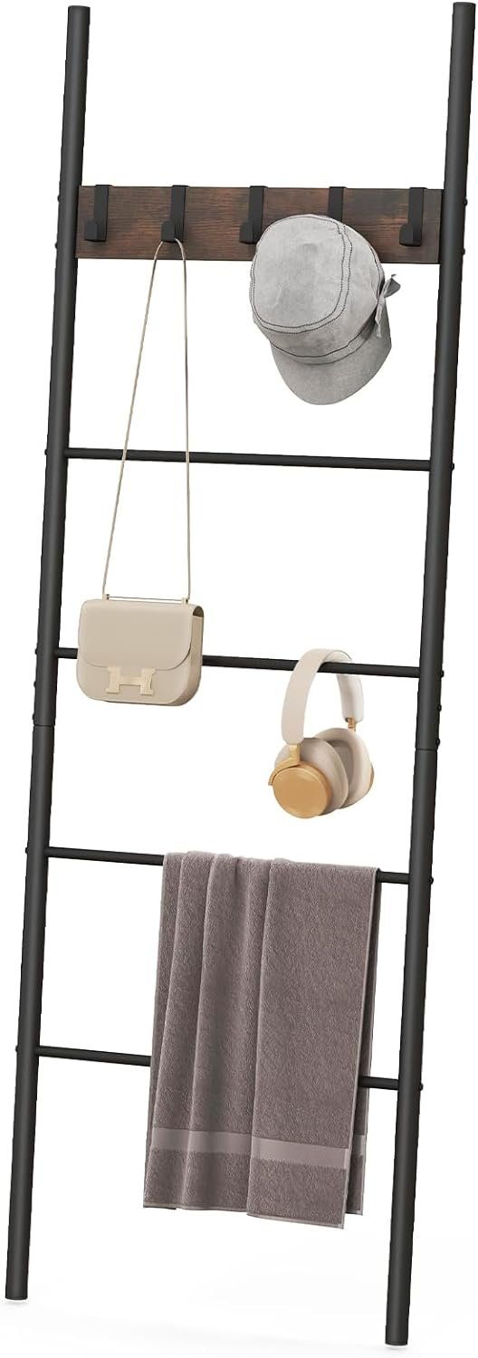 Organisieren und präsentieren Sie Ihre Decken, Handtücher, Schals und mehr mit unserer 5-stufigen Deckenleiter. Sie bietet ein platzsparendes Design, das perfekt für Räume mit begrenztem Platz ist. Die abnehmbaren Haken der Leiter ermöglichen es Ihnen, Hüte, Taschen oder Pflanzen aufzuhängen, was sie zu einer vielseitigen Aufbewahrungslösung macht. Hergestellt mit einem robusten Metallrahmen und mit Pulverbeschichtung behandelt, um Rost zu verhindern, ist unsere Leiter langlebig. Ihre schlichten Linien und industrieller Stil machen sie für jeden Raum geeignet, und sie lässt sich mit dem mitgelieferten Zubehör leicht montieren. Halten Sie Ihren Raum mit dieser praktischen Aufbewahrungsleiter mit stilvollem Design ordentlich und stilvoll.