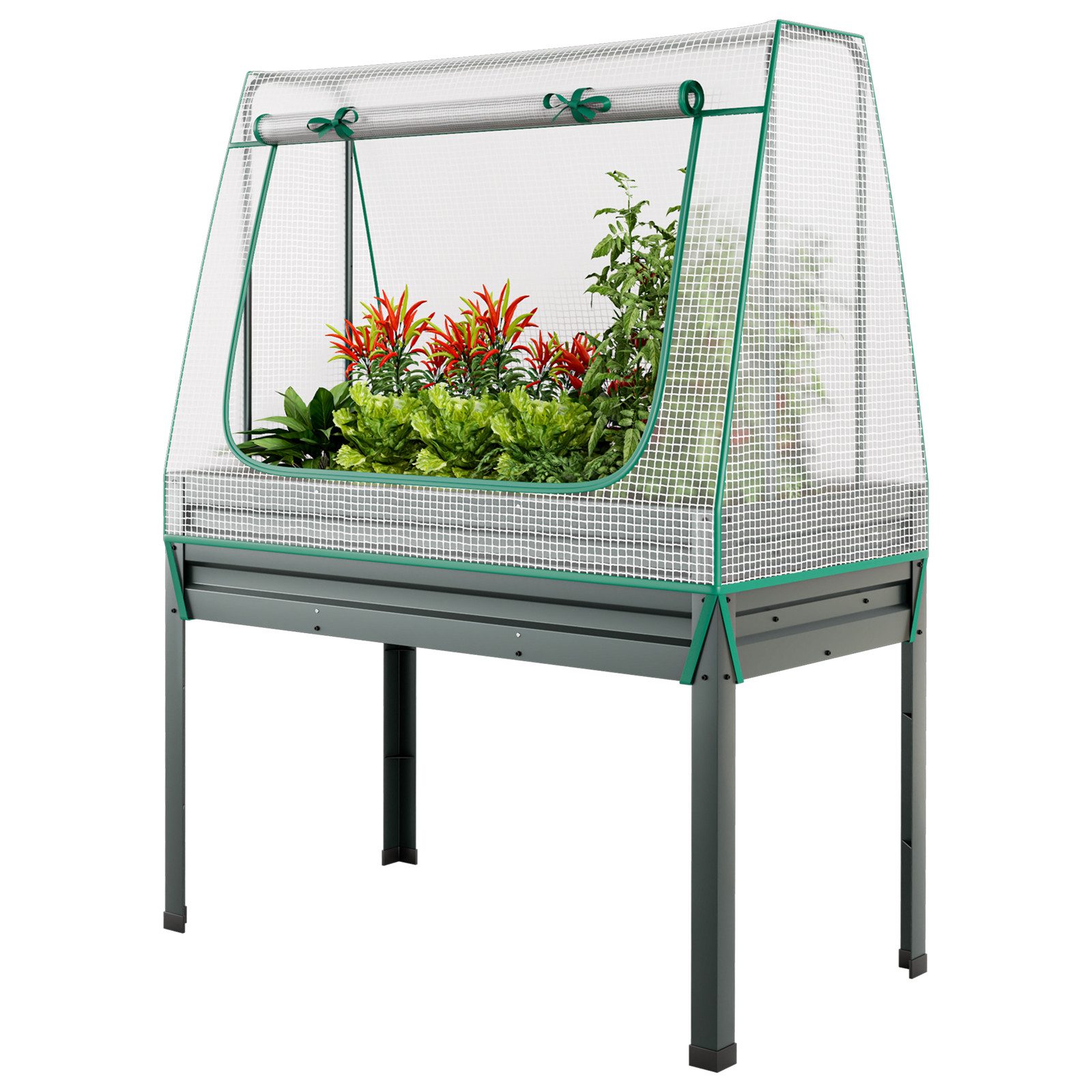 Dieser hohe Pflanzkasten kombiniert ein Hochbeet, ein kletterfreundliches Spalier und eine schützende Gewächshausabdeckung und eignet sich für verschiedene Pflanzenarten, um eine blühende Gartenoase zu schaffen. Die PE-Abdeckung schützt Ihr Grün vor schlechtem Wetter, während das praktische Rollfenster das Gießen vereinfacht. Darüber hinaus bleibt die Erde dank strategisch platzierter Löcher zur Aufrechterhaltung der idealen Luftfeuchtigkeit perfekt und fördert ein gesundes Pflanzenwachstum. Der Pflanzkasten ist aus hochbelastbarem verzinktem Stahl gefertigt und so konzipiert, dass er ihnen lange Zeit gute Dienste leistet. Außerdem hat er eine optimale Höhe von 80 cm, die Ihren Rücken schont und Ihnen die Gartenarbeit erleichtert.