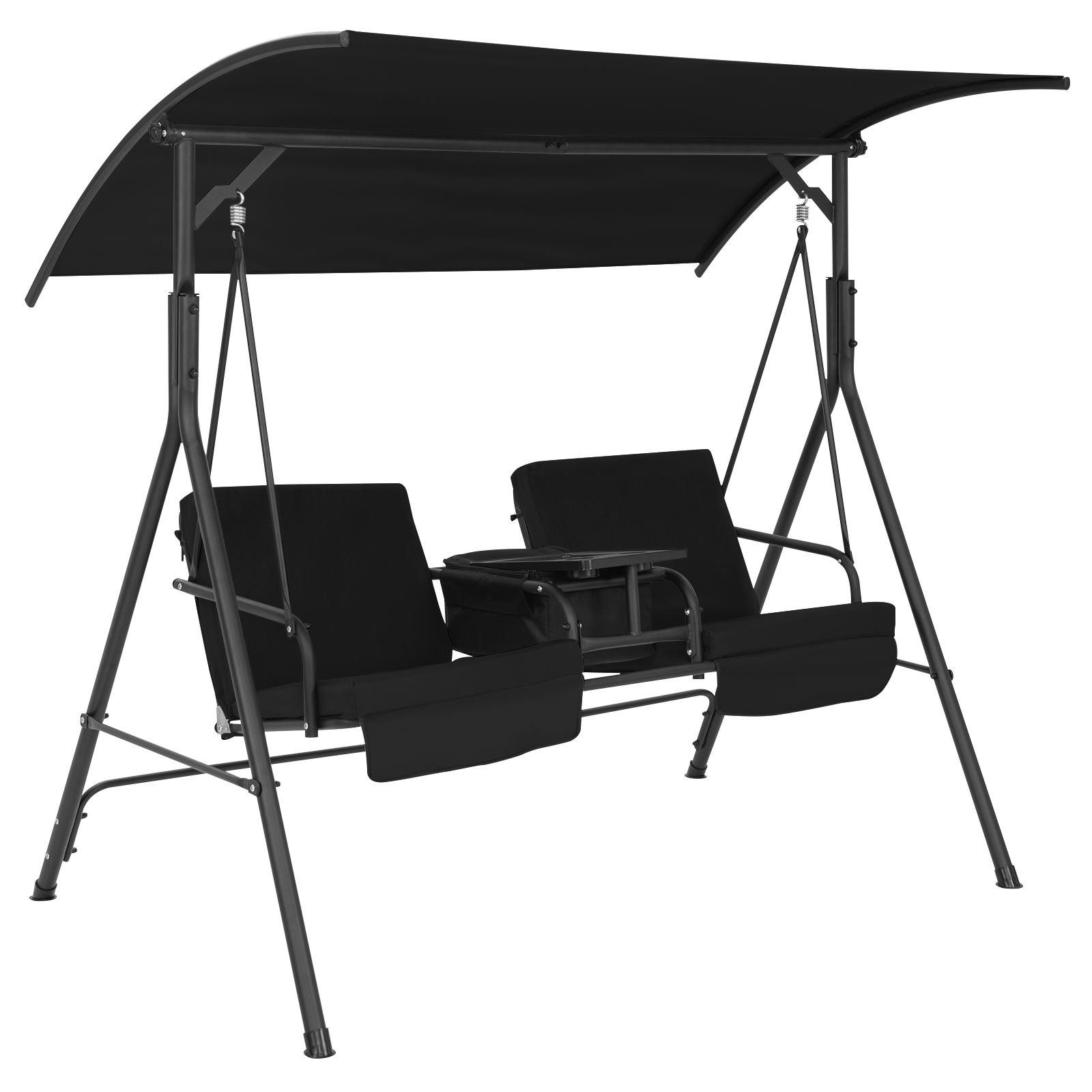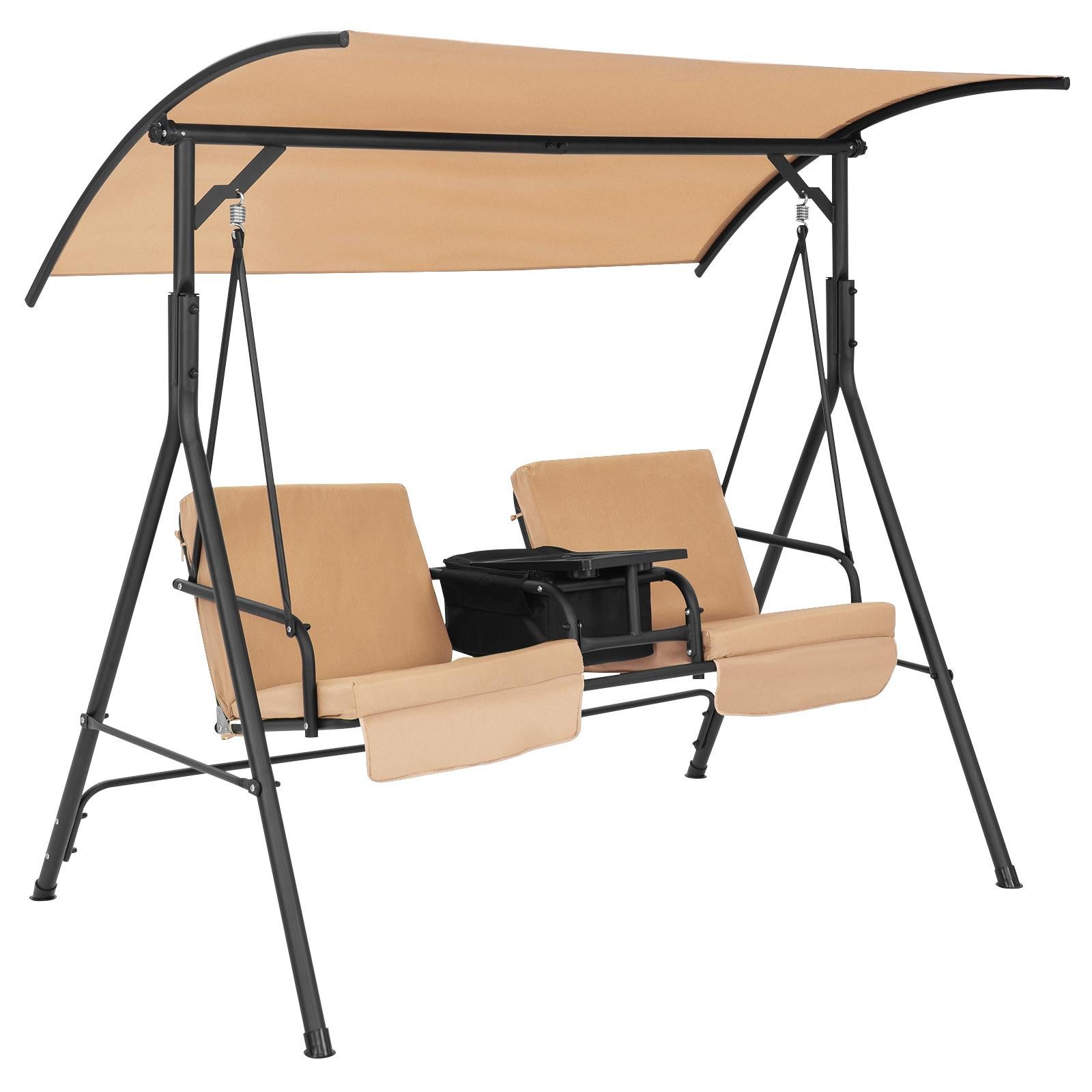 (мы ещё работаем над переводом, извините за неудобство): Diese Patio-Schaukel wird eine großartige Ergänzung für jeden Außenbereich sein. Das Doppelsitzdesign bietet Platz für 2 Personen, um gemeinsam zu schaukeln und doppelt so viel Spaß zu haben. Die Schaukel ist aus pulverbeschichtetem Stahlrahmen und Sonnenschutz-Polyestergewebe gefertigt und bietet Ihnen sowohl Schatten als auch Komfort. Der Winkel des Vordachs ist verstellbar für optimalen Schatten. Die 6-Gallonen-Kühltasche kann gekühlte Getränke oder Speisen lagern und ist leicht zugänglich mit doppelten Reißverschlüssen. Das mittlere Tablett mit 2 Becherhaltern hält Outdoor-Utensilien während Ihrer Freizeit. Geeignet für die Poolseite, Patio, Deck oder Garten, um Ihnen und Ihrer Familie eine entspannte und angenehme Zeit zu ermöglichen!