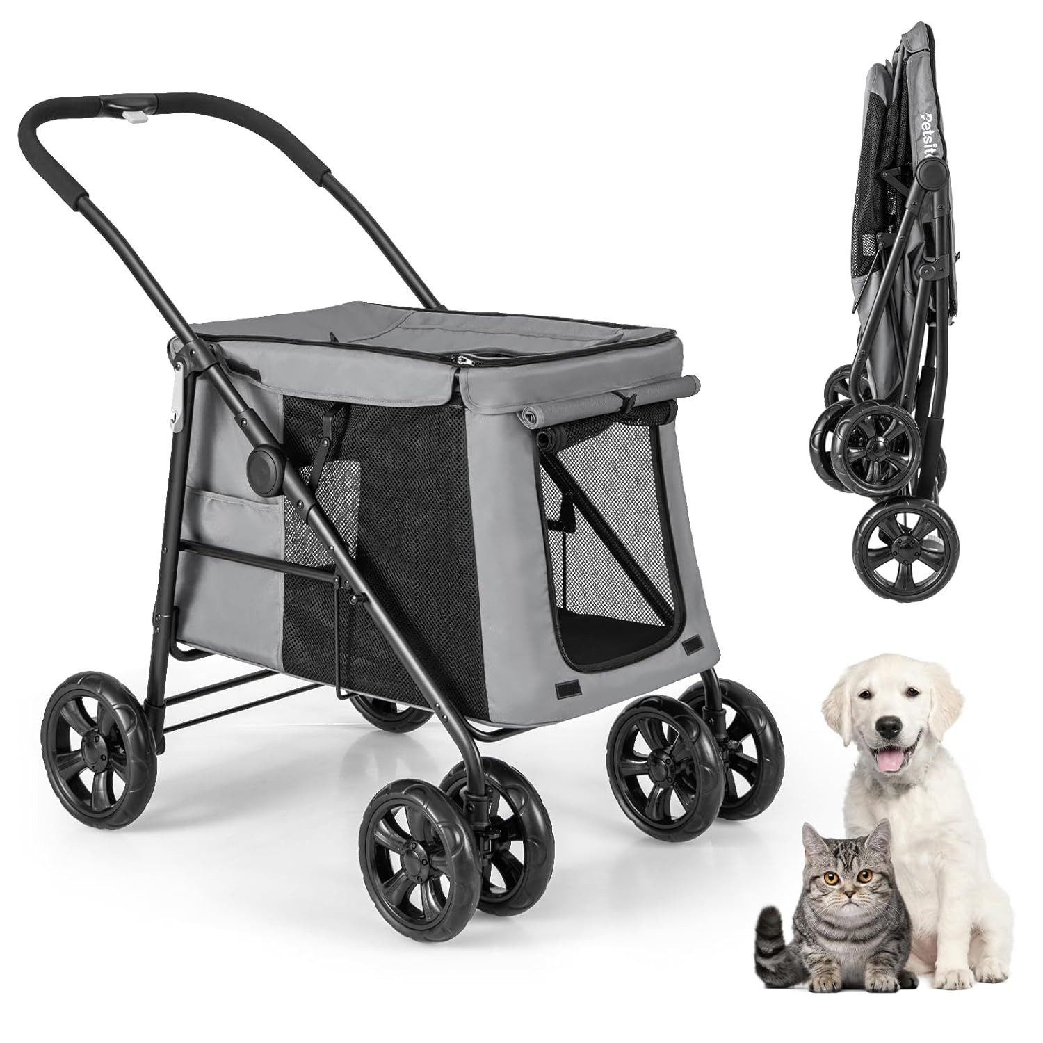 Dies ist ein hochwertiger und langlebiger Haustierwagen aus wasserdichtem und verschleißfestem Oxford-Gewebe, der leicht zu zerlegen und zu reinigen ist. Natürlich bietet dieser Sportwagen für Haustiere auch einen bequemen und sicheren Ruheplatz für Ihr Haustier, mit einem weichen Kissen und atmungsaktiven Netzfenstern. Die geländegängigen, stoßdämpfenden EVA-Räder und die Hinterräder mit Fußbremsen sorgen für eine reibungslose Mobilität auf jedem Terrain. Und das Beste ist, dass er durch sein faltbares Design leicht zu transportieren und zu verstauen ist. Dieser Transportwagen für Haustiere, bei dem jedes Detail auf Bequemlichkeit und Komfort ausgerichtet ist, eignet sich perfekt für Haustierbesitzer, die nach einer Möglichkeit suchen, ihren pelzigen Begleiter zu transportieren.