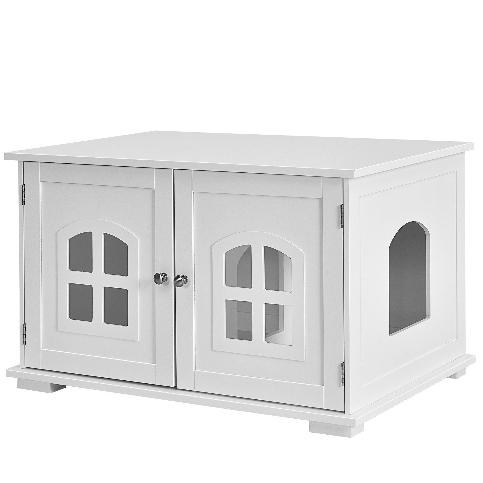 Unsere Katzenhöhle ist das komfortabelste Zuhause für Ihre lieben Katzen. Das Katzenhaus nimmt eine halbgeschlossene Struktur an und gibt Ihrer Katze mehr Sicherheit. Das hausförmige Loch an der Seite erleichtert das Ein- und Aussteigen der Katze und Sie können es je nach Bedarf auf der linken oder rechten Seite montieren. Eine herausnehmbare Trennwand auf der Innenseite teilt den Raum in zwei Hälften und bietet Platz für ein weiches Kissen und ein Katzenklo. Und die Oberseite kann für kleine Dekorationsgegenstände verwendet werden. Wichtig ist, dass das Katzenhaus aus MDF gefertigt ist, was es robust und stabil macht. Der Katzenkorb ist einfach zu montieren und die glatte Oberfläche ist leicht zu reinigen.
