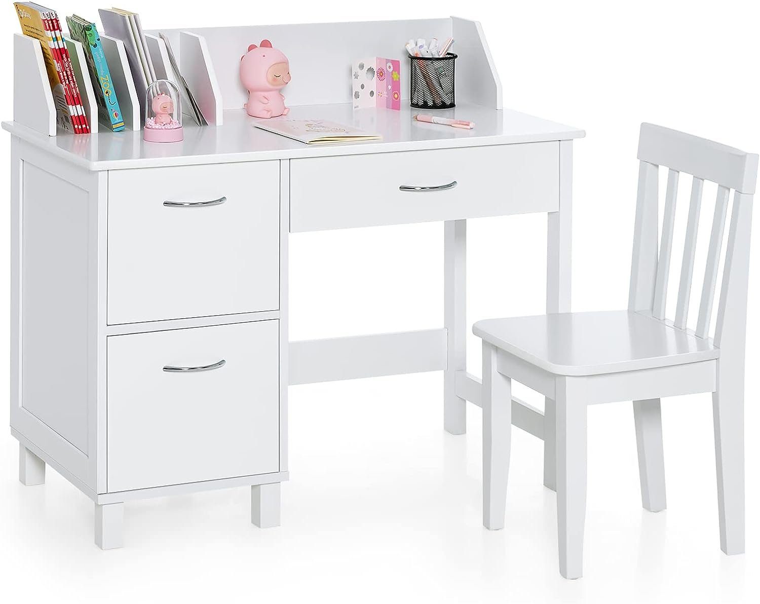 Holen Sie sich ein vielseitiges Kinderschreibtisch-Set für Ihr Kind und lassen Sie es das Wachstum Ihres Kindes begleiten. Aus hochwertigem Material gefertigt und mit einer Kippsicherung ausgestattet, ist dieses Kinderschreibtisch-Set robust, stabil, sicher und für Kinder geeignet. Kinder können es für Computer und Hausaufgaben verwenden und Gegenstände in Schubladen und Schränken verstauen, um Platz zu schaffen. Der mitgelieferte Stuhl sorgt für ein gutes Sitzgefühl und hilft dem Kind, eine gute Sitzposition einzunehmen. Dieses stilvolle Schreibtischset für Kinder ist ein perfektes Geschenk.