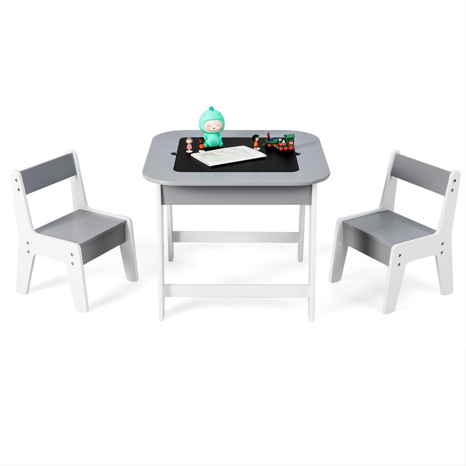 Mit unseren Kindertisch und -stühlen können Sie Ihrem Kind eine farbenfrohe Kindheit bescheren. Wenn die Kinder mit dem Spielen fertig sind, öffnen Sie die abnehmbare Tischplatte und legen Sie Spielzeug, Bauklötze oder Snacks in den Stauraum, um dann die schwarze oder weiße Seite nach Belieben zu bemalen. Der Kindertisch mit 2 Stühlen können auch zum täglichen Lernen oder Essen verwendet werden. Die Ecken sind abgerundet, so dass Sie sich keine Sorgen machen müssen, dass sich Ihr Kind verletzen könnte. Die Stühle können auch unter den Tisch geschoben werden, wenn sie nicht gebraucht werden, um Platz zu sparen.