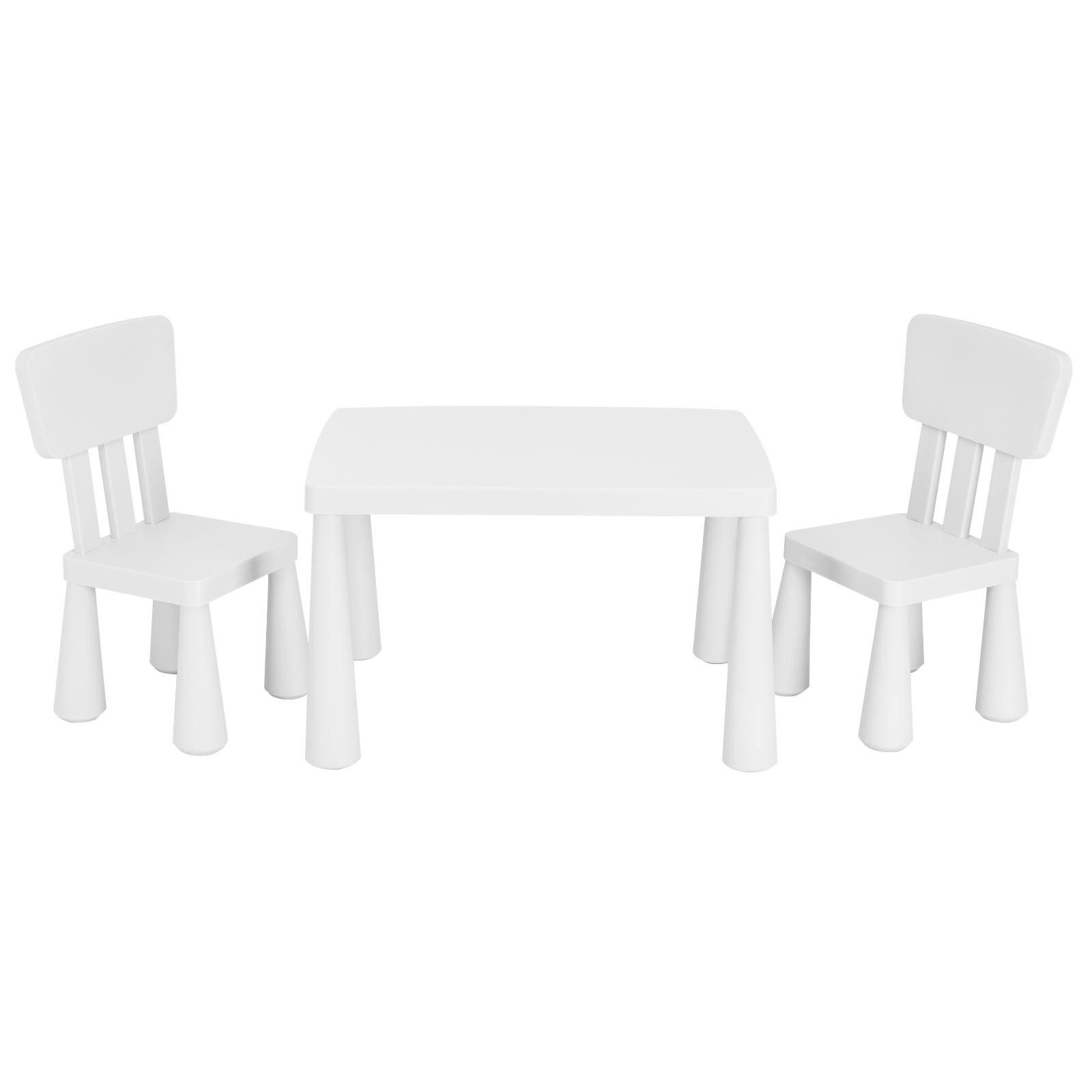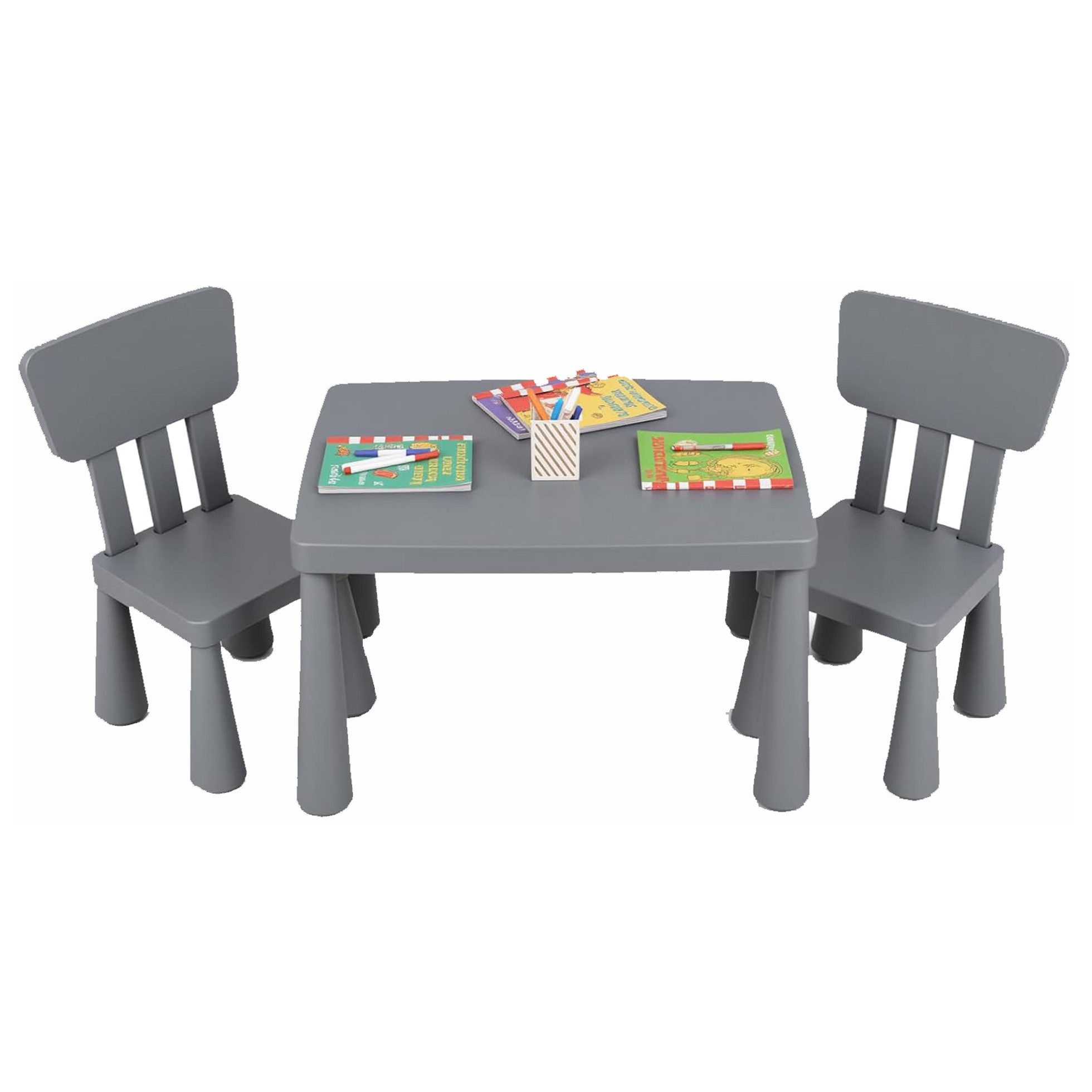 Die Kindersitzgarnitur ist perfekt auf die Bedürfnisse von Kleinkindern ausgerichtet. Sie besteht aus einem Kindertisch und zwei passenden Stühlen. Ihr Nachwuchs kann dadurch schon von klein auf bequem am Tisch sitzen, essen, spielen und basteln. Hergestellt aus PP ist das Set strapazierfähig, langlebig und hochbelastbar. Für mehr Stabilität sorgen die großen Füße, die fest auf dem Boden stehen. Der Tisch und die Stühle haben abgerundete Ecken, keine scharfen Kanten und überzeugen durch das kindgerechte Design. Mit dem schlichten Aussehen fügen sie sich ideal in unterschiedlichste Einrichtungen ein.