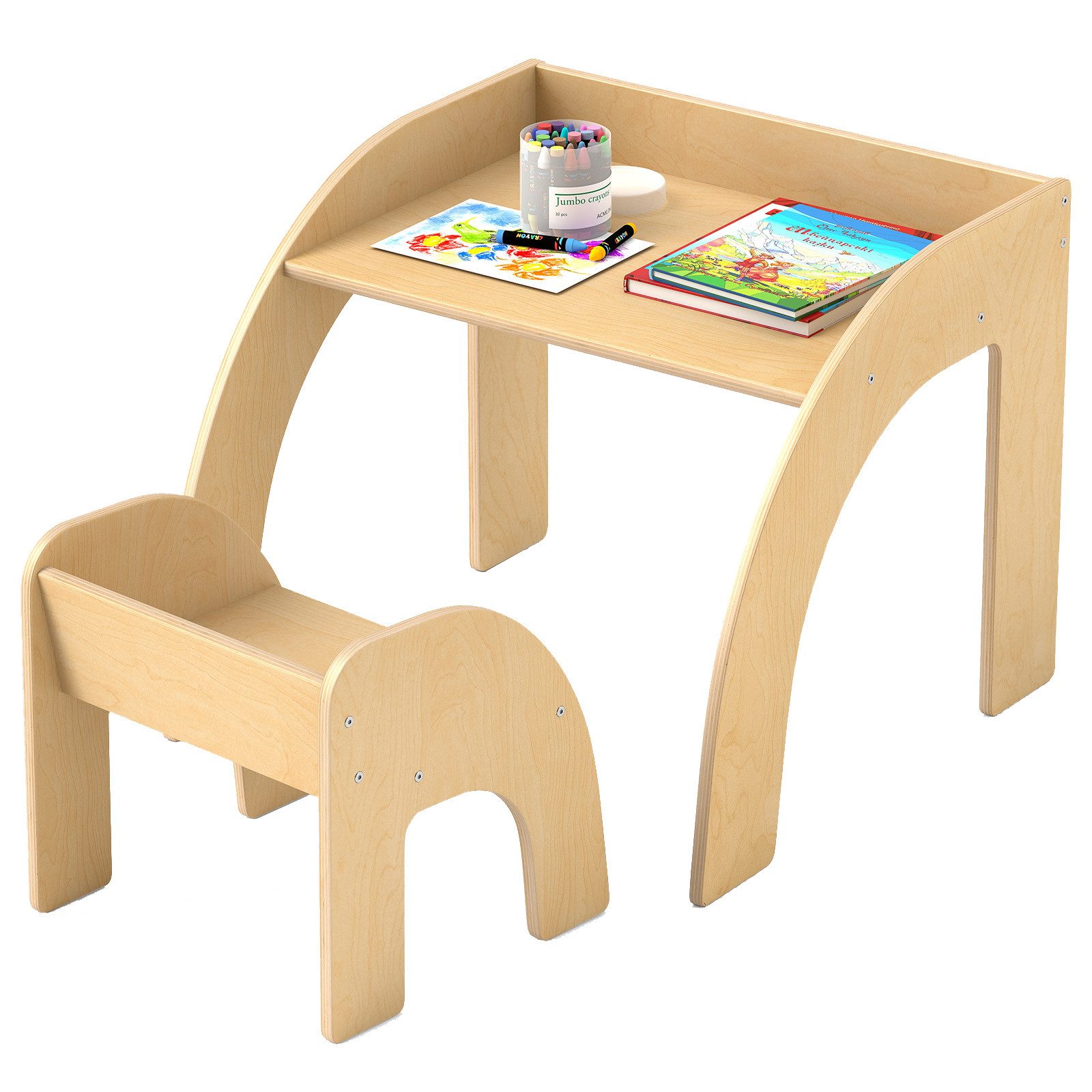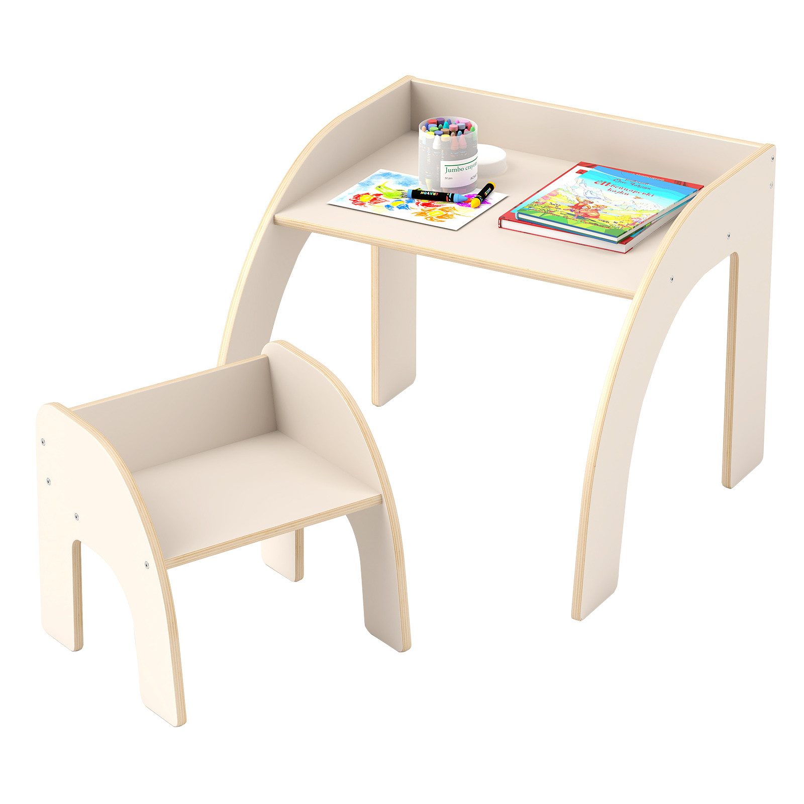 Das Kindertisch bestehend aus einem kindertisch und einem stuhl eignet sich ideal für aktivitäten wie lesen, zeichnen, schreiben, essen und spielen. Hergestellt aus hochwertigem Holzwerkstoff bietet das set stabilität und langlebigkeit. Es zeichnet sich durch anti-absturz-begrenzungen an den rändern und abgerundete ecken aus, um stöße und kratzer zu minimieren. Die pflegeleichte oberfläche ermöglicht eine einfache reinigung, und das durchdachte design ermöglicht eine platzsparende aufbewahrung. Geeignet für das kinderzimmer, spielzimmer, wohnzimmer oder die kindertagesstätte.