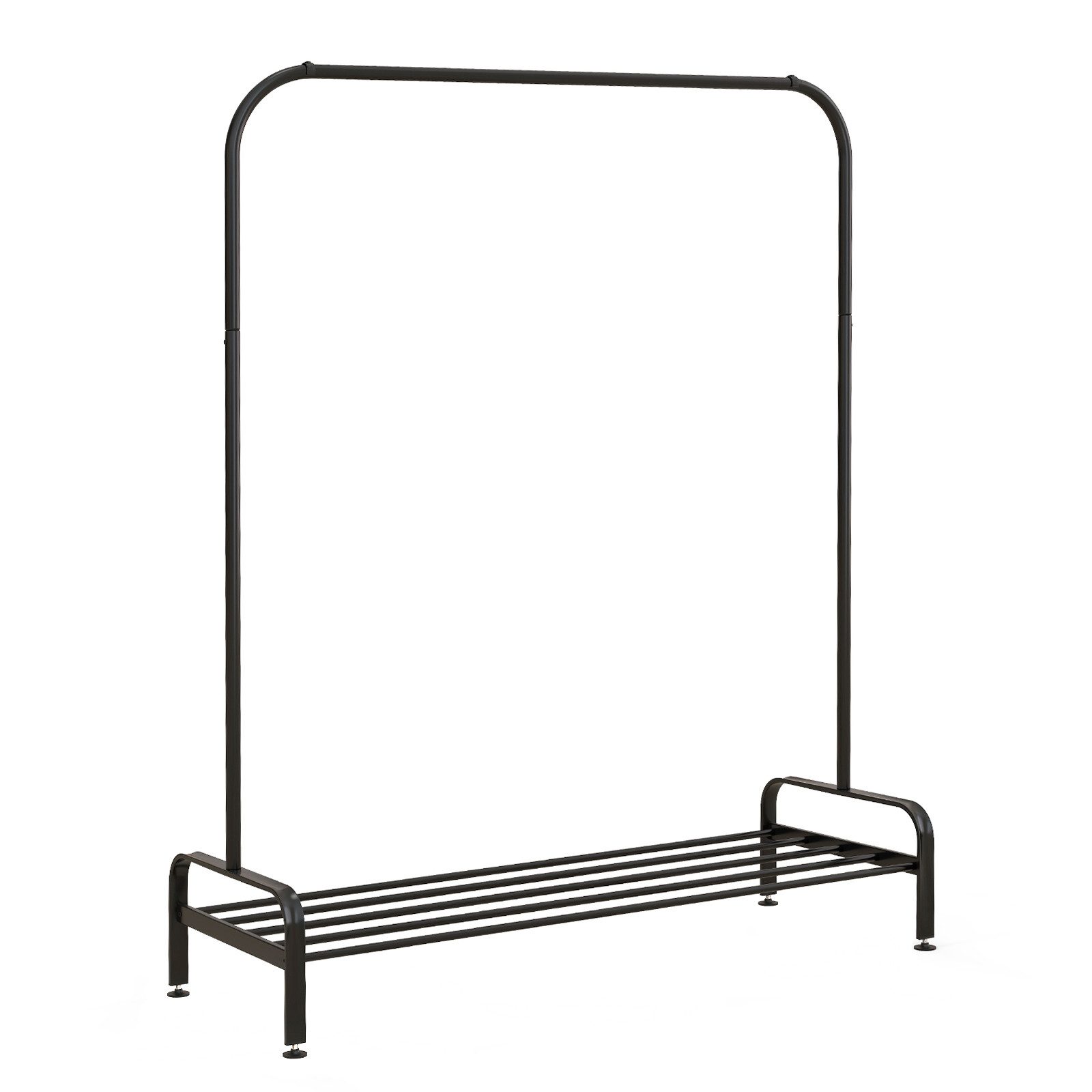 Wenn Sie einen 2-in-1-Garderobenständer suchen, sind Sie bei unseren Produkten genau richtig. Unser Garderobenständer ist aus kunststoffbesprühten Metallrahmen gefertigt. Es hat den Vorteil, dass es leicht zu reinigen ist, nicht leicht rostet und sich nicht verformt. Er hat auch eine ausgezeichnete Tragfähigkeit und kann bis zu 15 Kleidungsstücke und 5 Paar Schuhe aufhängen, um Ihren täglichen Bedarf zu erfüllen. Die verstellbaren Füße an der Unterseite passen sich nicht nur an Bodenunebenheiten an und geben Ihnen zusätzliche Stabilität.Es ist erwähnenswert, dass der Querbalken mit einer Anti-Rutsch-Klemmen ausgestattet ist, damit Ihre Kleidung nicht herunterrutscht. Dieser einfache und praktische Kleiderständer ist perfekt für den Gebrauch zu Hause, im Geschäft oder im Garten. Er ist ein perfekter Wäscheständer, Präsentationsständer und Pflanzenständer.