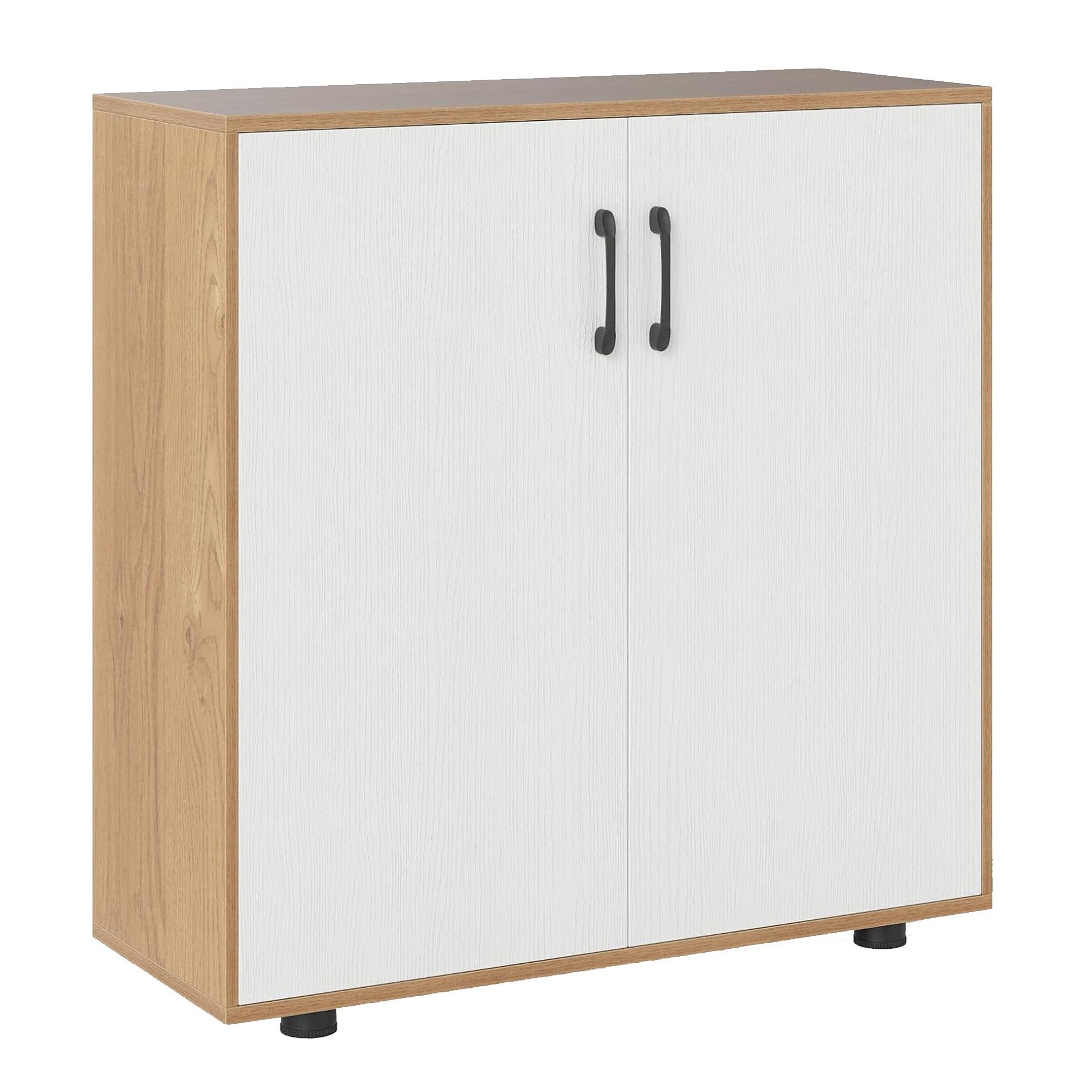 Möchten Sie, dass Ihr Zuhause ordentlicher und organisierter aussieht? Dann brauchen Sie sicherlich die Hilfe praktischer Möbel. Unser Stauraum-Schrank hat eine Oberseite und einen Unterschrank, die Gegenstände aufnehmen können, und das Regal im Schrank kann in fünf Positionen je nach Размер der Artikel eingestellt werden. Die beiden Türen halten verschiedene Gegenstände vor Staub geschützt und sauber, und die beiden Griffe helfen, die Türen des Schranks besser zu öffnen und zu schließen. Neben der Praktikabilität verleiht die Holzmaserung auf der Oberseite auch einen dekorativen Reiz, sodass er eine großartige Wahl für den Flur, das Wohnzimmer oder das Schlafzimmer ist.