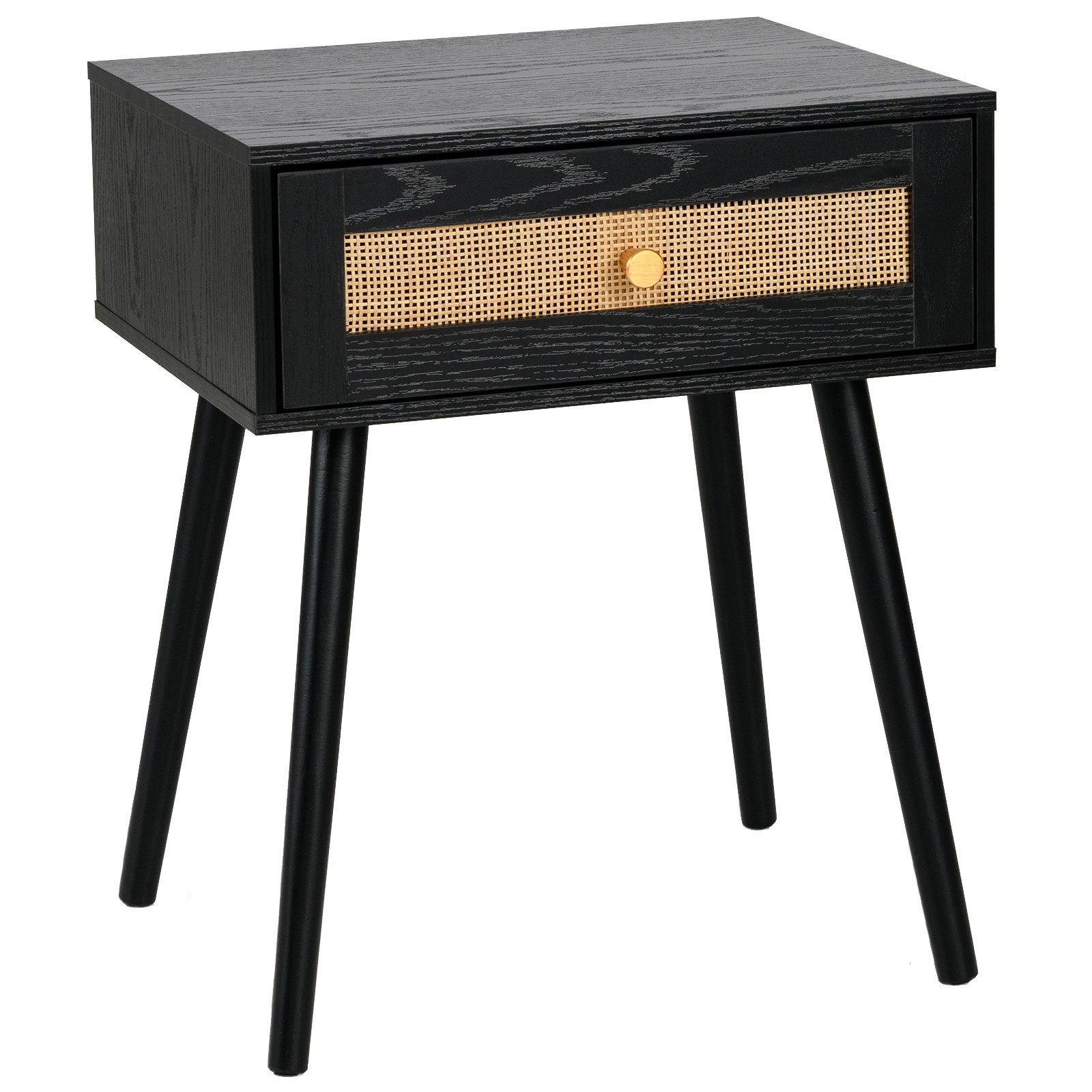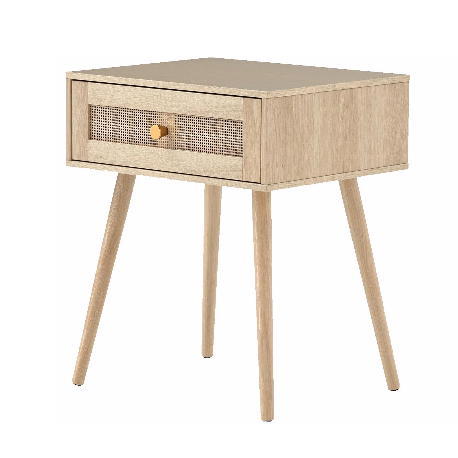 Der Nachttisch vereint Stil und Funktion. Dieser Nachttisch verfügt über eine geräumige Tischplatte und eine große Schublade mit Metallgriffen zur Aufbewahrung von wichtigen Dingen. Mit natürlichem Rattan dekoriert, hat er eine Holzmaserung und robuste Massivholzbeine. Die Tischplatte kann bis zu 10 kg und die Schublade bis zu 5 kg tragen, was ihn zu einer praktischen Aufbewahrungslösung macht. Der Ablagetisch ist mit rutschfesten Füßen und Anti-Kipp-Mechanismus ausgestattet, um Stabilität zu gewährleisten. Dieses vielseitige Möbelstück kann als Nachttisch, Beistelltisch oder Kaffeetisch im Boho-Look verwendet werden. Er ist leicht zu montieren und perfekt, um Ihre Einrichtung aufzuwerten.