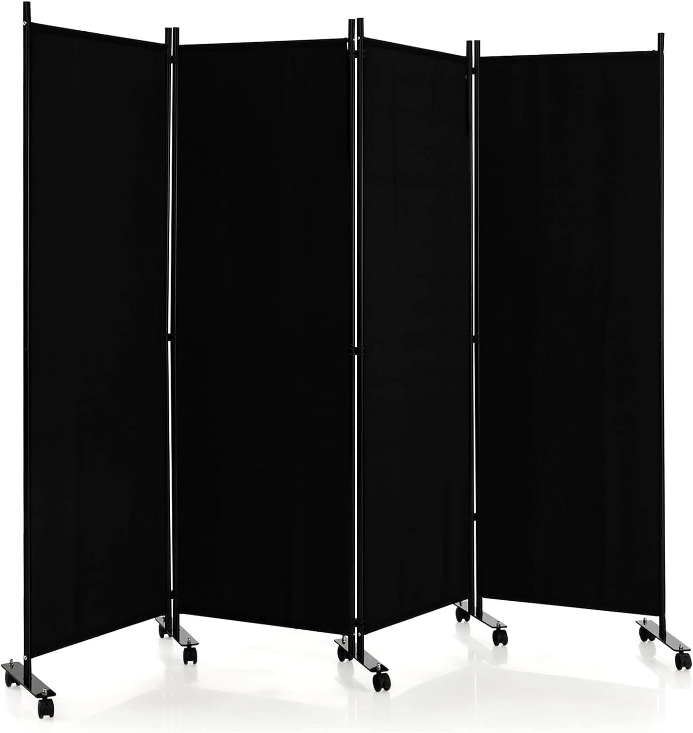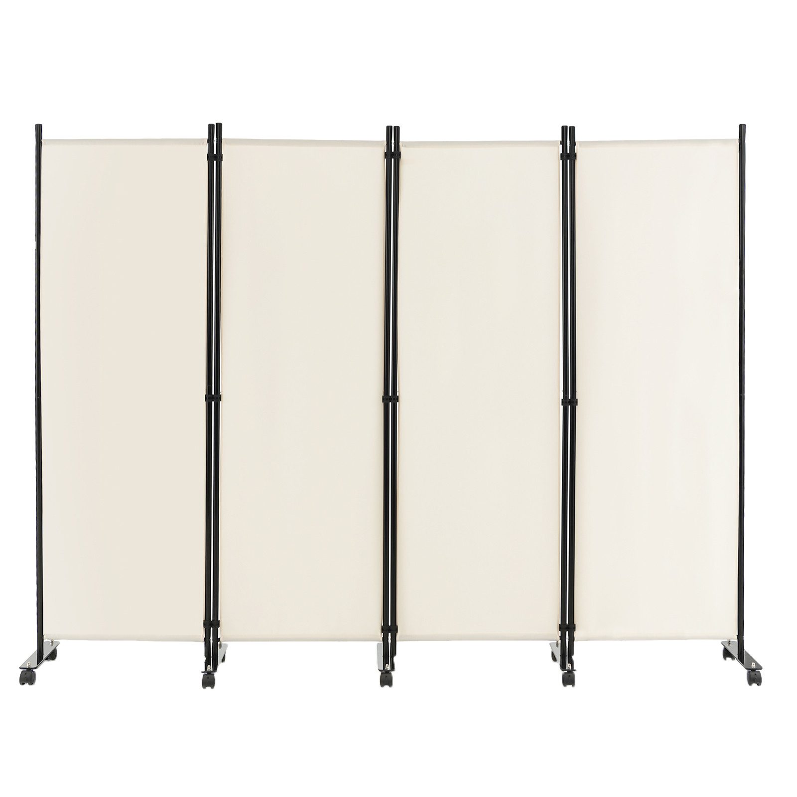 Der 4-teilige Raumteiler kann einen friedlichen persönlichen Raum vom Raum trennen, um Ihnen Privatsphäre zu bieten. Der blickdichte Stoffschirm schafft eine Wand, die die Sicht blockiert, während er eine gute Luftzirkulation gewährleistet. Mit den flexiblen Verbindungsschnallen können Sie die bedeckte Fläche anpassen oder das Raumpanel zu einer kompakten Размер für bequeme Aufbewahrung zusammenklappen. Unser Trennwandschirm besteht aus einem starken Metallrahmen, der rostbeständig und stabil ist. Ausgestattet mit 4 Universalrädern bewegt sich der Sichtschutz sehr leicht. Dieser vielseitige freistehende Raumteiler kann für viele Orte verwendet werden, ob es sich um ein Wohnheim, Büro, Esszimmer, Wohnzimmer oder Krankenhaus handelt.