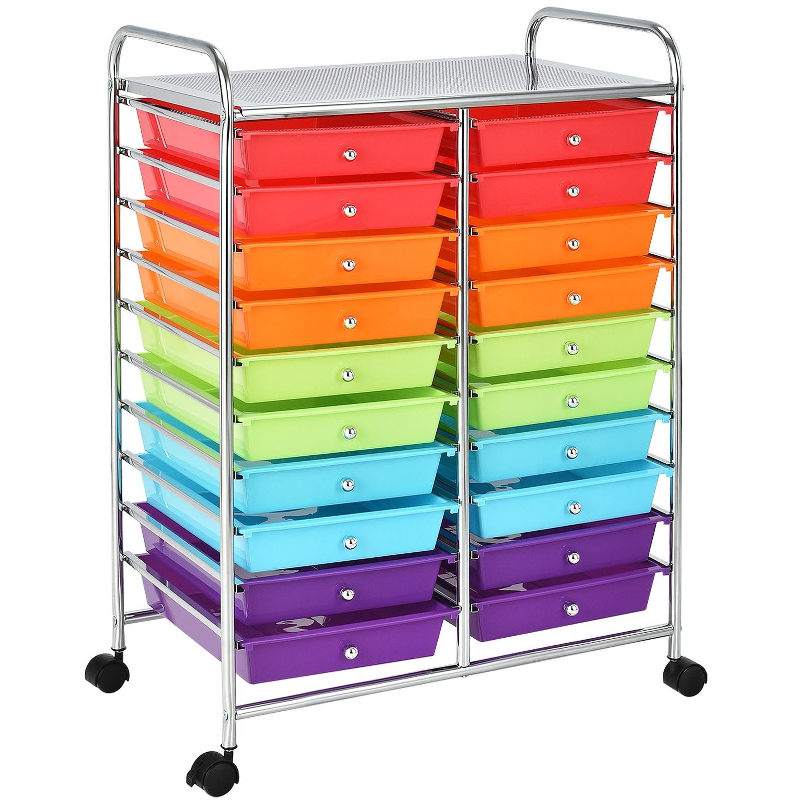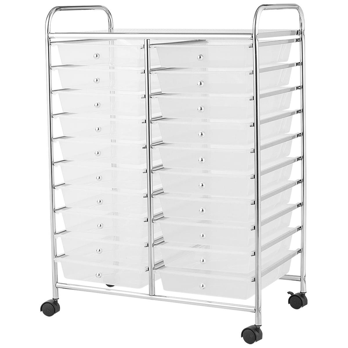 Dieser Rollwagen ist mit vier frei beweglichen Rädern ausgestattet, so dass Sie ihn überall hinbewegen können, wo Sie ihn brauchen. Da zwei der Räder arretiert werden können, sorgt dies wiederum für die Stabilität des Beistellwagens, so dass er nicht zum Verrutschen neigt, was ihn sehr sicher und praktisch macht. Dank der 20 großen Schubladen kann dieser Rollwagen Ihren Stauraumbedarf erfüllen, so dass Sie Spielzeug, Werkzeuge, Kosmetika und andere Gegenstände je nach Bedarf sortieren und aufbewahren können. Er nimmt auch nicht viel Platz weg und eignet sich für den Einsatz in Büros, Küchen, Bad und mehr. Die abnehmbaren Schubladen erleichtert auch die Reinigung. Daher ist dieser Wagen definitiv ideal für die Lagerung zu Hause.