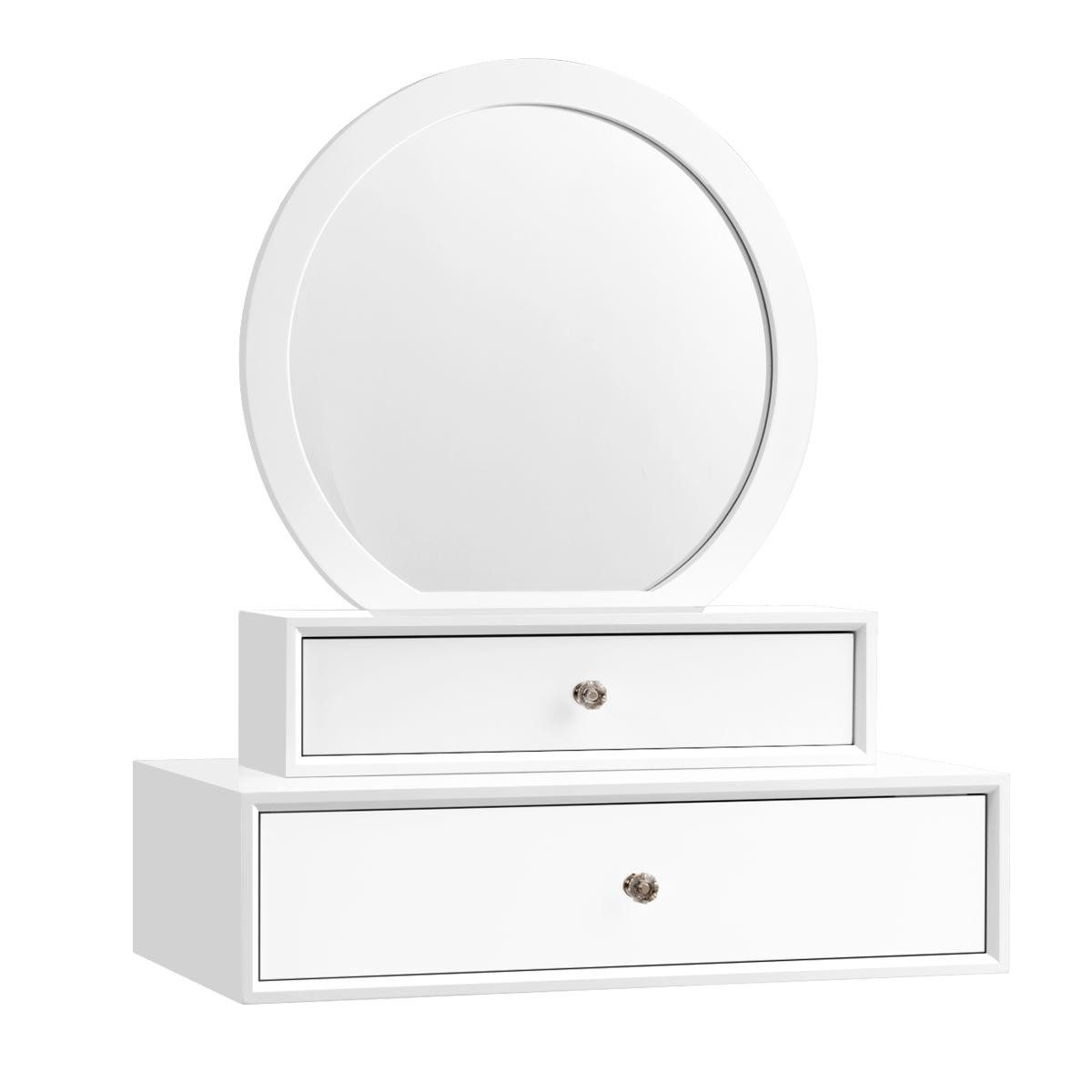 Dieser Kosmetikspiegel mit 2 Schubladen ist definitiv die perfekte Ergänzung für Ihr Schlafzimmer, Badzimmer mit seinem eleganten Design und anspruchsvollen Aussehen. Der Schminkspiegel deckt jeden Winkel ab, während Sie sich frisieren oder schminken, und bietet Ihnen eine klare Rundumsicht. Die zwei mitgelieferten Schubladen bieten reichlich Platz für Ihre Accessoires und Schminkutensilien, und die Kristallgriffe helfen Ihnen auch, Ihre Gegenstände schneller zu erreichen. Da die Schubladen abnehmbar sind, können Sie einen Schminktisch nach Ihren Bedürfnissen und Vorlieben zusammenstellen. Sie können ihn auf einen Tisch stellen oder an der Wand befestigen, ohne Bodenfläche zu beanspruchen. So einen schönen, hochwertigen Schminkspiegel mit 2 Schubladen sind geeignet für alle Altersgruppen und kann als ein ideales Geschenk für Ihre Tochter, Frau oder Freundin sein.