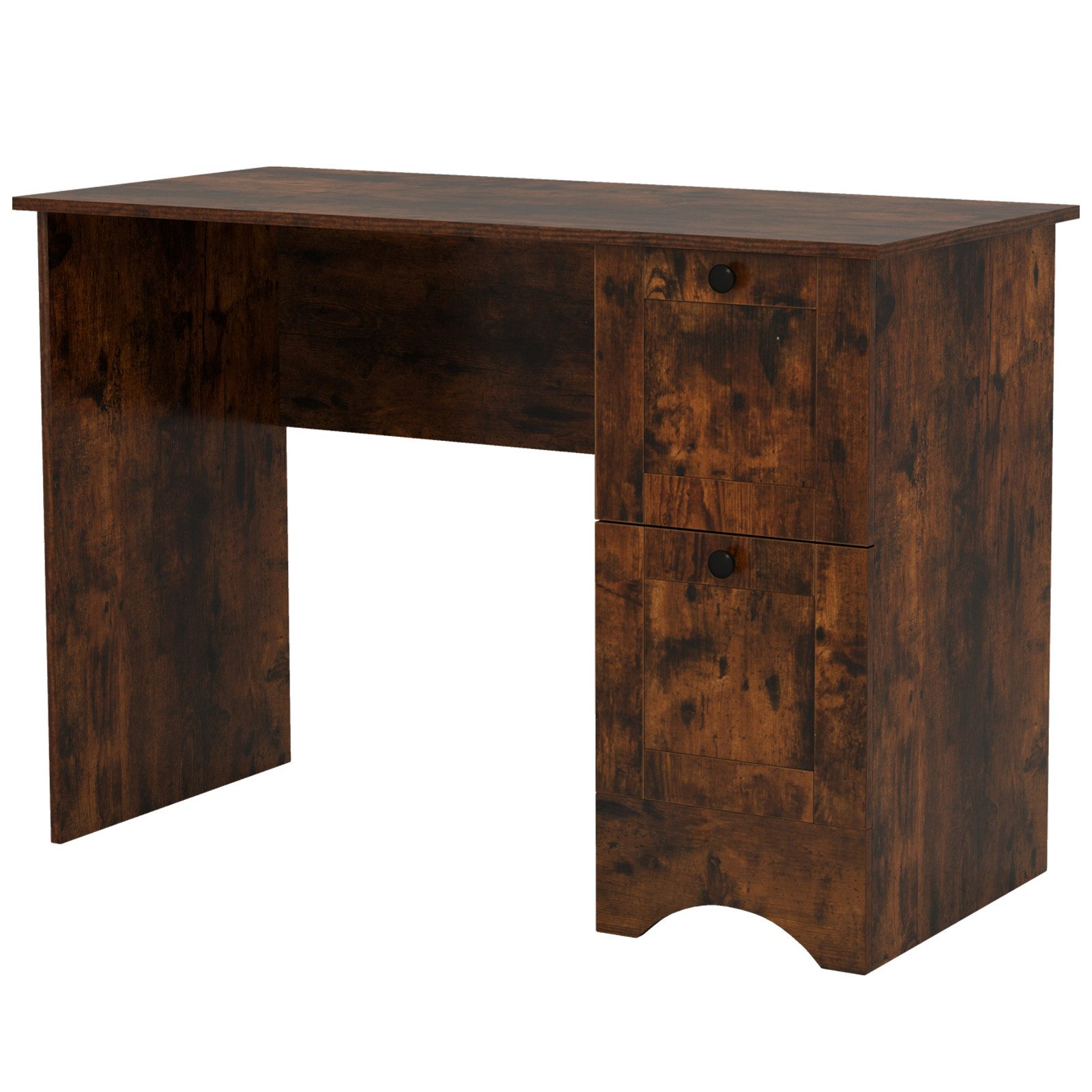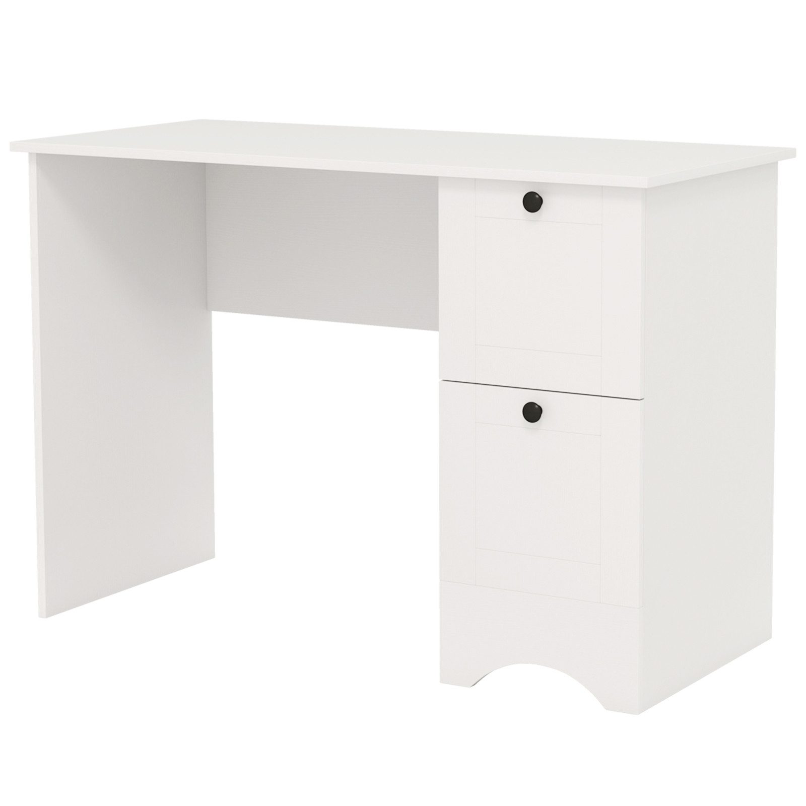 Heben Sie sich mit Eleganz und Funktionalität hervor dank unseres modernen Schreibtisches, der Ihre Arbeitsfläche optimiert. Mit den Maßen 109 x 50 x 75 cm bietet dieser geräumige Tisch eine große Arbeitsplatte, auf der Sie Laptop, Bücher und alle wichtigen Dinge bequem platzieren können, während der Platz unter dem Tisch es ermöglicht, Ihre Beine auszustrecken und in vollem Komfort zu arbeiten. Ausgestattet mit zwei Schubladen bleibt Ihr persönliches Zubehör gut organisiert und in Reichweite.