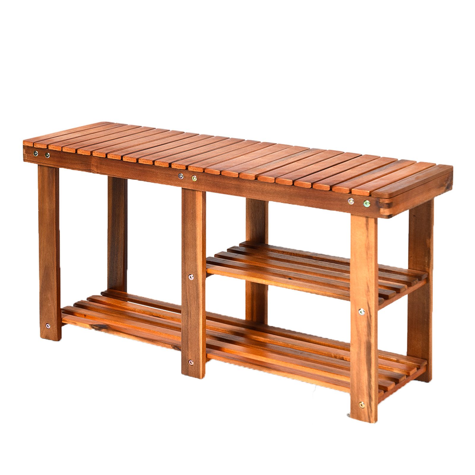 Diese Schuhbank ist genau das, was Sie brauchen. Es handelt sich um eine Kombination aus Schuhregal und Bank, die Platz für viele Schuhe zur Verfügung stellt und eine Sitzgelegenheit zum Wechseln der Schuhe bietet. Natürlich ist dies auch ein vielseitiges Regal, Sie können es im Badezimmer aufstellen, um Ihre Toilettenartikel zu tragen, es im Garten als Topfregal aufstellen und so weiter. Es besteht aus Akazienholz und verzinkten Stahlschrauben, um einen guten Halt und Stabilität zu gewährleisten. Das großzügige Design passt gut zu Ihren Möbeln und eignet sich für die Platzierung im Eingangsbereich, Flur, Wohnzimmer, Schlafzimmer, Badezimmer, Balkon usw.