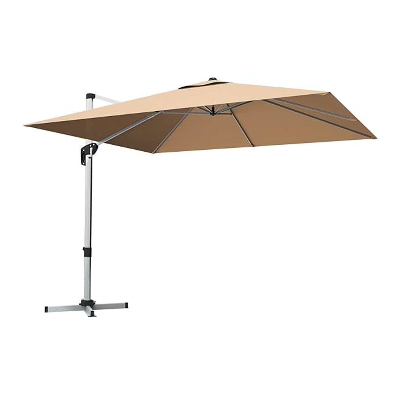 Wenn Sie einen Outdoor-Sonnenschirm mit großem Schattenbereich suchen, sollten Sie sich unser Produkt nicht entgehen lassen. Dieser Regenschirm besteht aus hochdichtem Polyestergewebe, das einen sehr guten Sonnenschutz und eine wasserdichte Wirkung hat. Der Rahmen aus Aluminiumstange und 8 Eisenrippen macht es stark und langlebig. Der Kreuzfuß und das dreieckige Design sorgen für zusätzliche Stabilität und Sicherheit, damit der Sonnenschirm bei windigem Wetter nicht wackelt. Das Dachdesign oben ermöglicht eine bessere Belüftung, sodass Sie mit Freunden oder der Familie einen kühlen und komfortablen Tag unter dem Regenschirm verbringen können. Es ist erwähnenswert, dass Sie die 7-stufige Höhe und den Neigungswinkel durch Betätigen der Kurbel einstellen können und der Schirm um 360° gedreht werden kann, um den gewünschten Schattierungseffekt zu erzielen. Es eignet sich sehr gut für den Einsatz im Garten, auf der Terrasse, in der Bar oder am Pool.