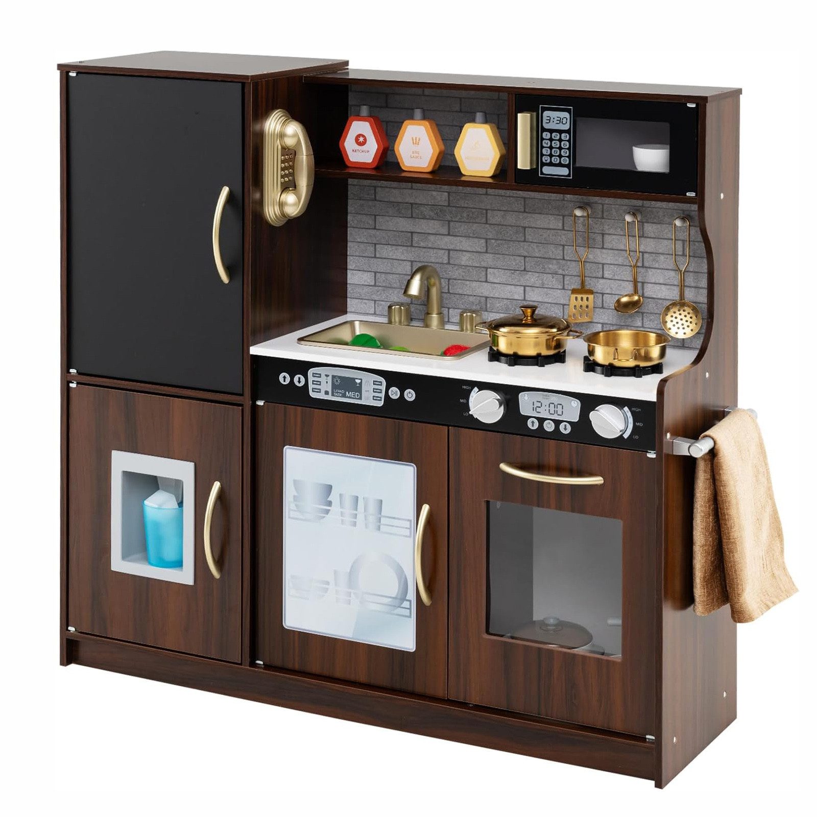 Unsere Kinderküche - das perfekte Spielset für kleine Köche! Dieses Küchenset bietet mehrere Kocheinstellungen, zusätzliches Küchenzubehör und hörbare Knöpfe für ein realistisches Kocherlebnis für Ihr Kind. Die Schränke mit Türen, Regalen, seitlichen Handtuchhaltern und Haken bieten reichlich Stauraum, um alle Kochutensilien geordnet aufzubewahren. Außerdem sorgen zusätzliche Funktionen wie eine Kreidetafel und ein Telefon für noch mehr Spielspaß. Sicherheit steht immer an erster Stelle, und dieses Küchenset ist aus robustem Holz gefertigt, das für Langlebigkeit sorgt, mit glatten Oberflächen und Kippsicherungen für zusätzliche Sicherheit. Lassen Sie der Fantasie Ihres Kindes freien Lauf, während es in dieser Spielküche köstliche Mahlzeiten zubereitet und spielerisch grundlegende Lebenskompetenzen entwickelt.