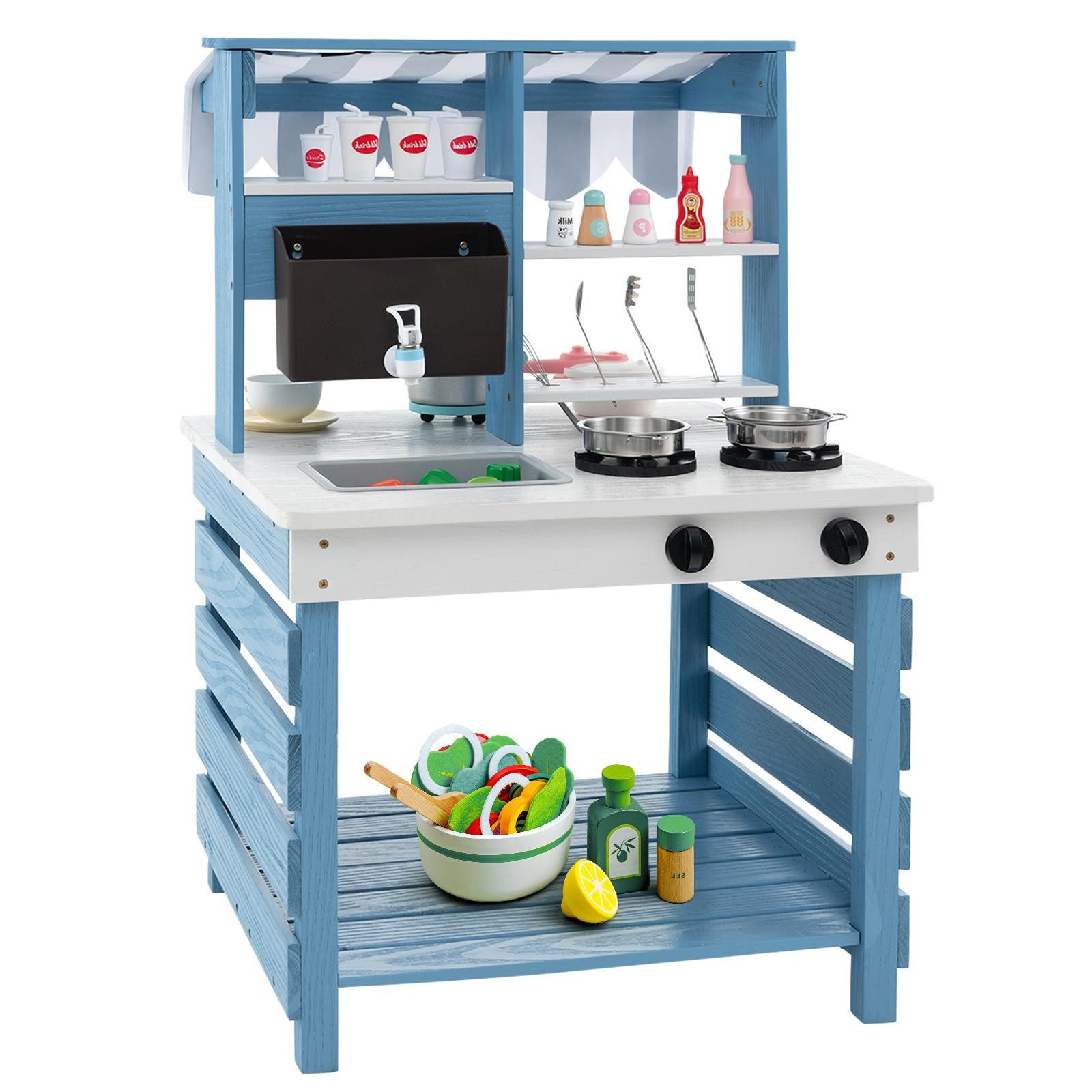 (мы ещё работаем над переводом, извините за неудобство): Lassen Sie Ihr Kind mit dieser 2-in-1-Matschküche Spaß am Rollenspiel haben und sich mit Matsch schmutzig machen! Dieses doppelseitige Küchenspielset verfügt über einen stabilen Tannenholzrahmen mit glatter Oberfläche und abgerundeten Kanten für mehr Sicherheit sowie ein Dach aus Oxford-Stoff für Schatten. Darüber hinaus können Kinder dank des doppelseitigen Designs ein vollständiges und realistisches Kocherlebnis mit einem großen Kochbereich, einem Bestellbereich, einer abnehmbaren Spüle, einem abnehmbaren Wasserkasten mit Wasserhahn, 6 mitgelieferten Küchenzubehörteilen und 2 Drehknöpfen mit Soundeffekten genießen. Die zahlreichen Aufbewahrungsmöglichkeiten, wie Lagerregale und Aufhängehaken, ermutigen Kinder, einen sauberen und organisierten Bereich aufrechtzuerhalten, und fördern so Managementfähigkeiten. Schenken Sie Ihrem Baby dieses Kochküchenspielzeug!